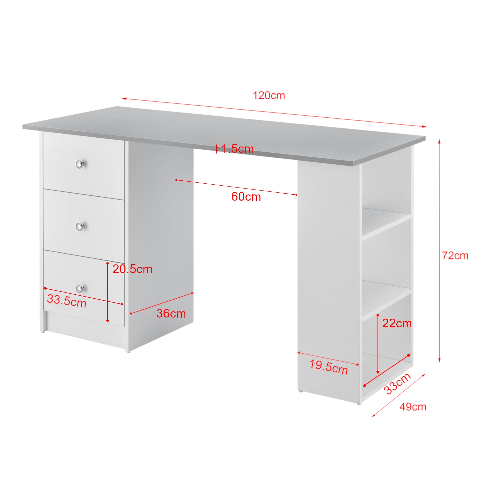 - Półka z szufladami (wys. x szer. x gł.): 70,5x36,5x36cm