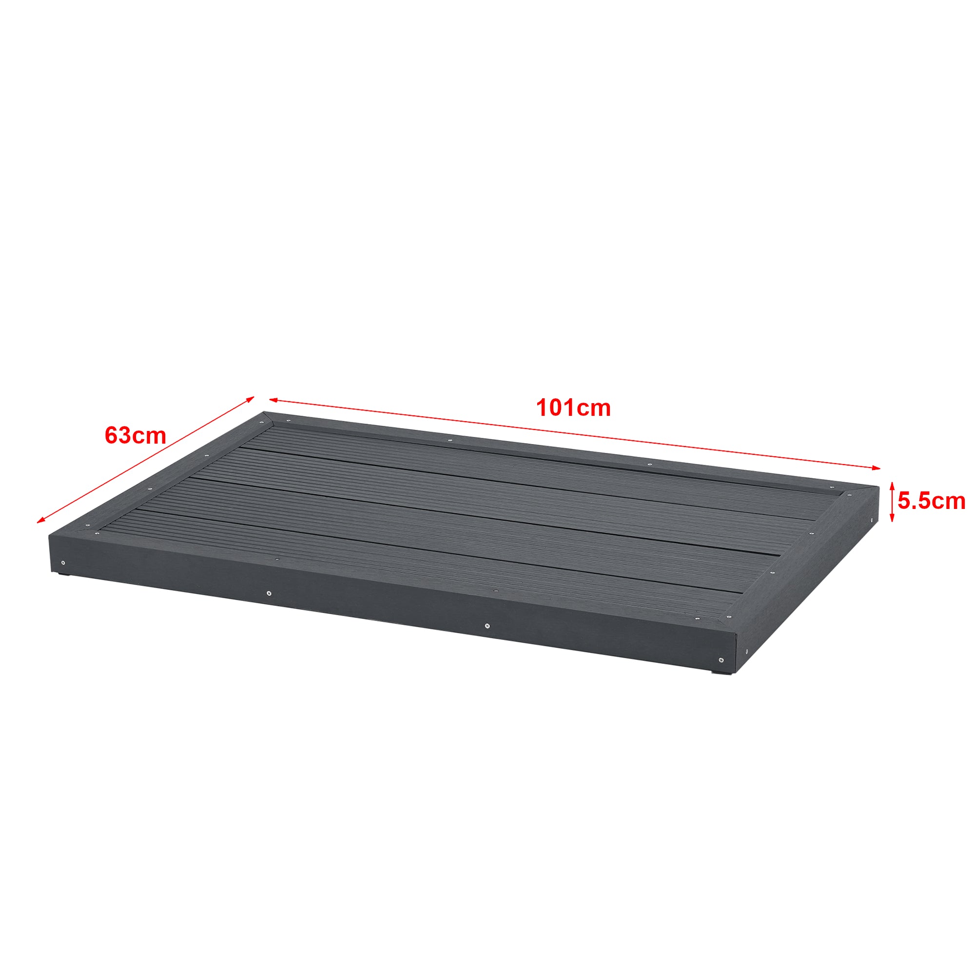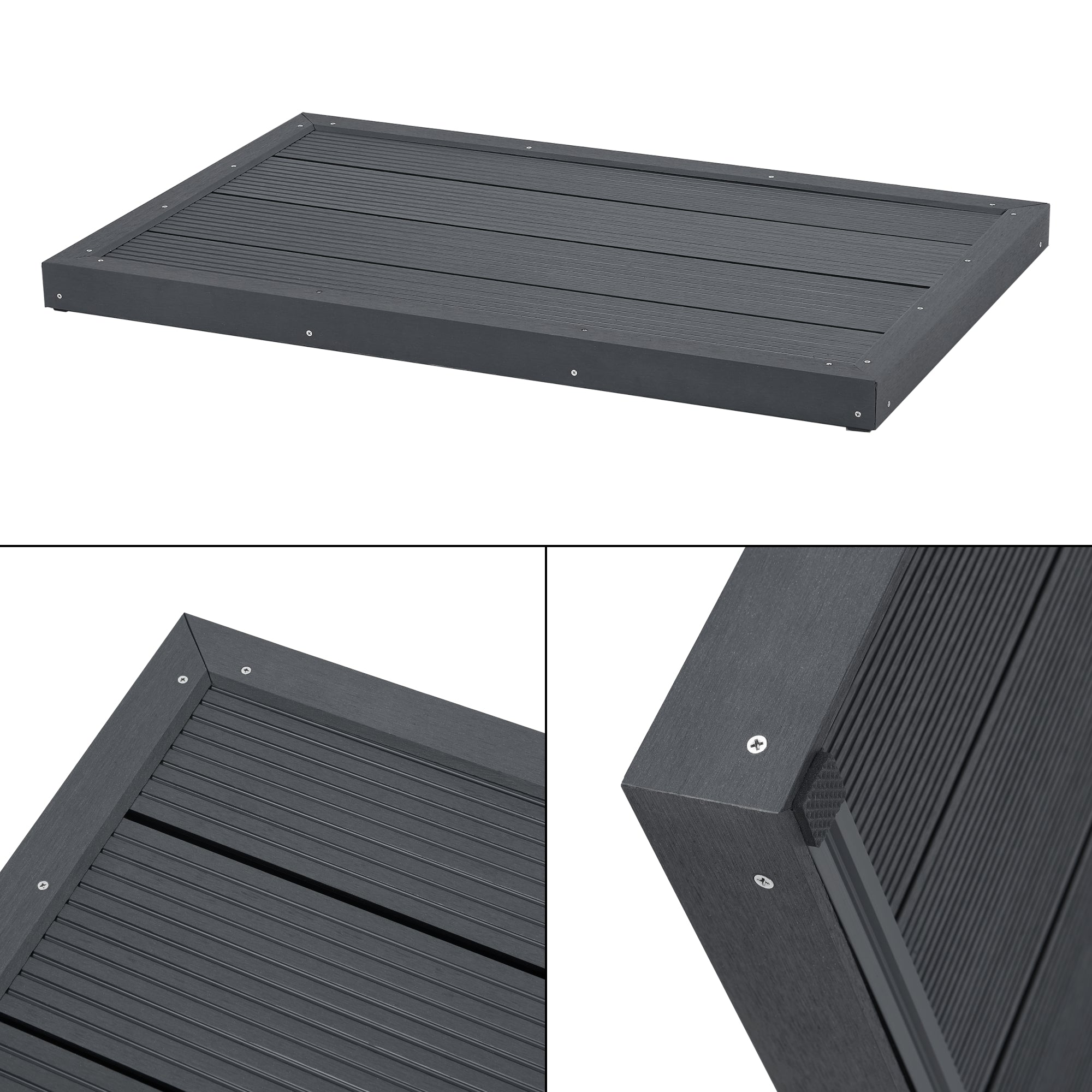 Trwały i antypoślizgowy panel podłogowy WPC jest idealny do prysznica solarnego i zapewnia czystą i schludną atmosferę. Może być również używany jako wycieraczka lub podstawa drabinki basenowej.