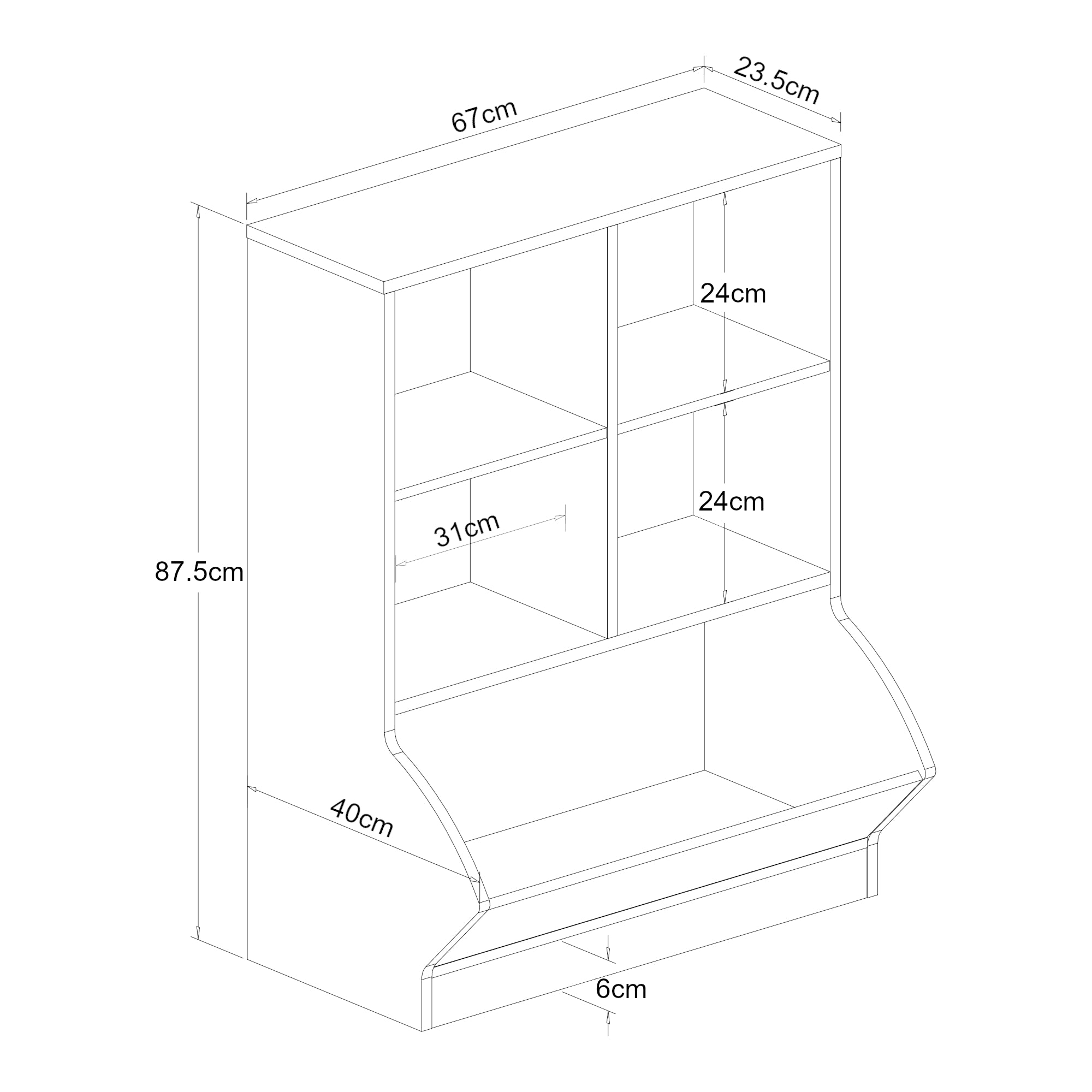- Otwarty schowek (wys. x szer. x gł.): 24 x 31 x 23,5 cm każdy