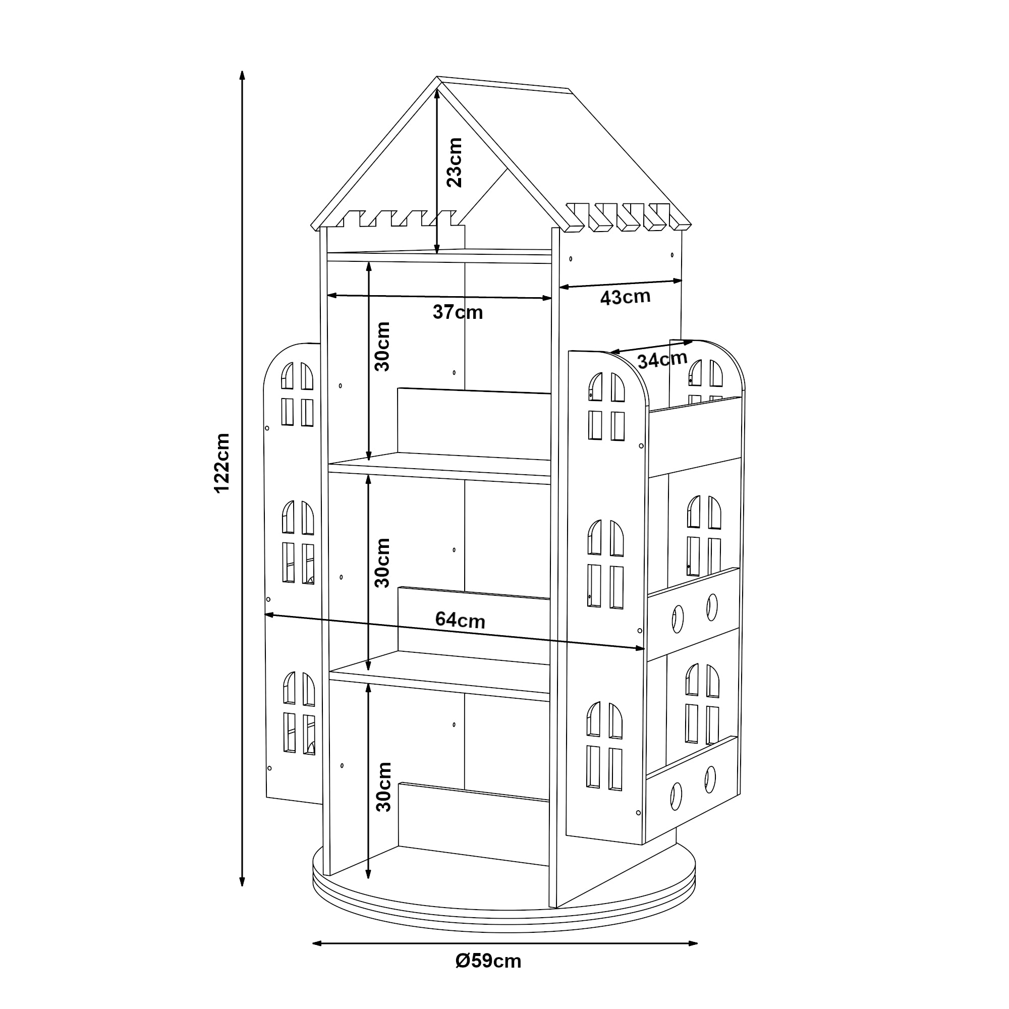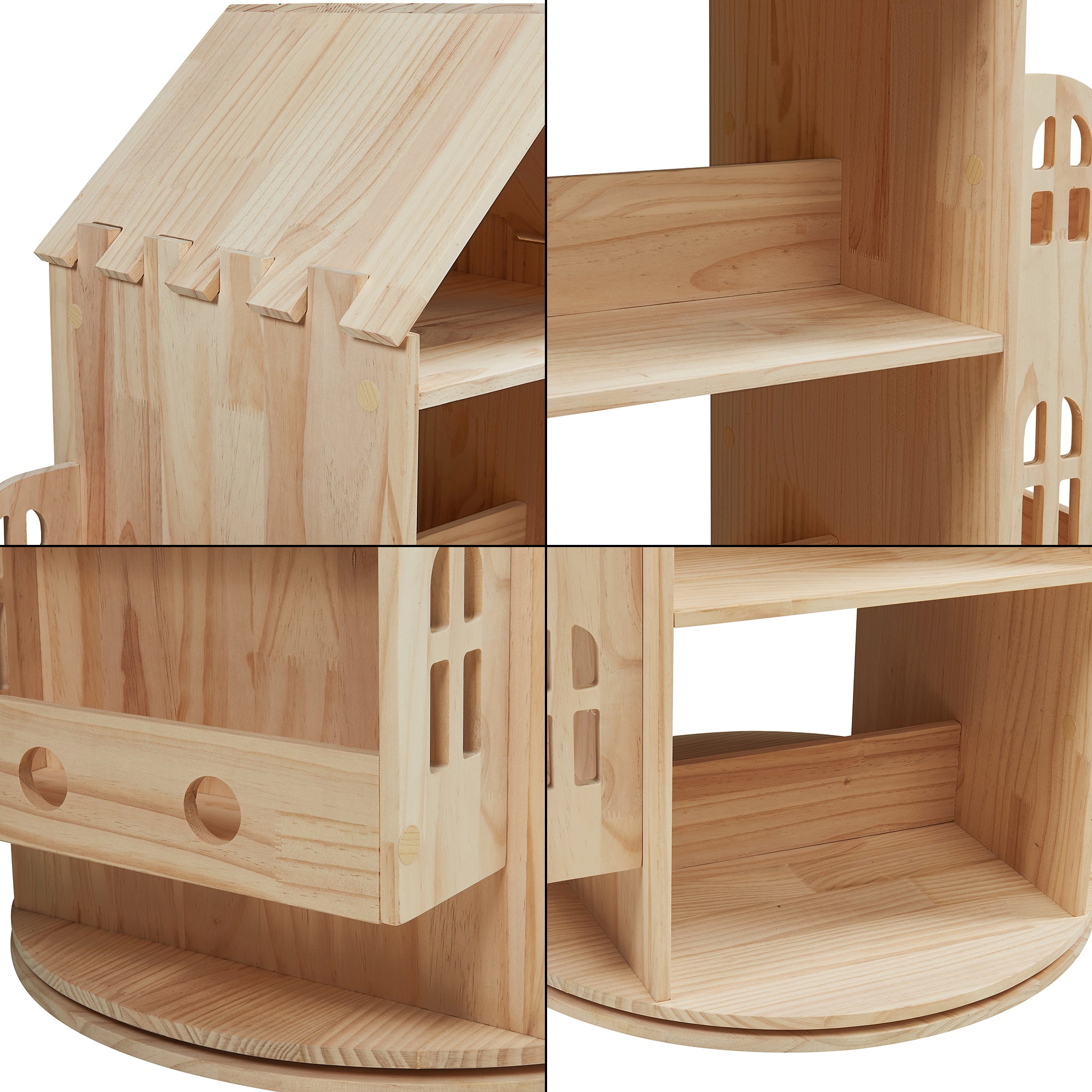 >Dzięki czterem otwartym schowkom pośrodku i trzem schowkom po każdej stronie, obrotowa półka dla dzieci oferuje mnóstwo miejsca na dziecięce skarby. Dekoracyjny wygląd domku sprawia, że przyciąga wzrok w każdym pokoju dziecięcym.