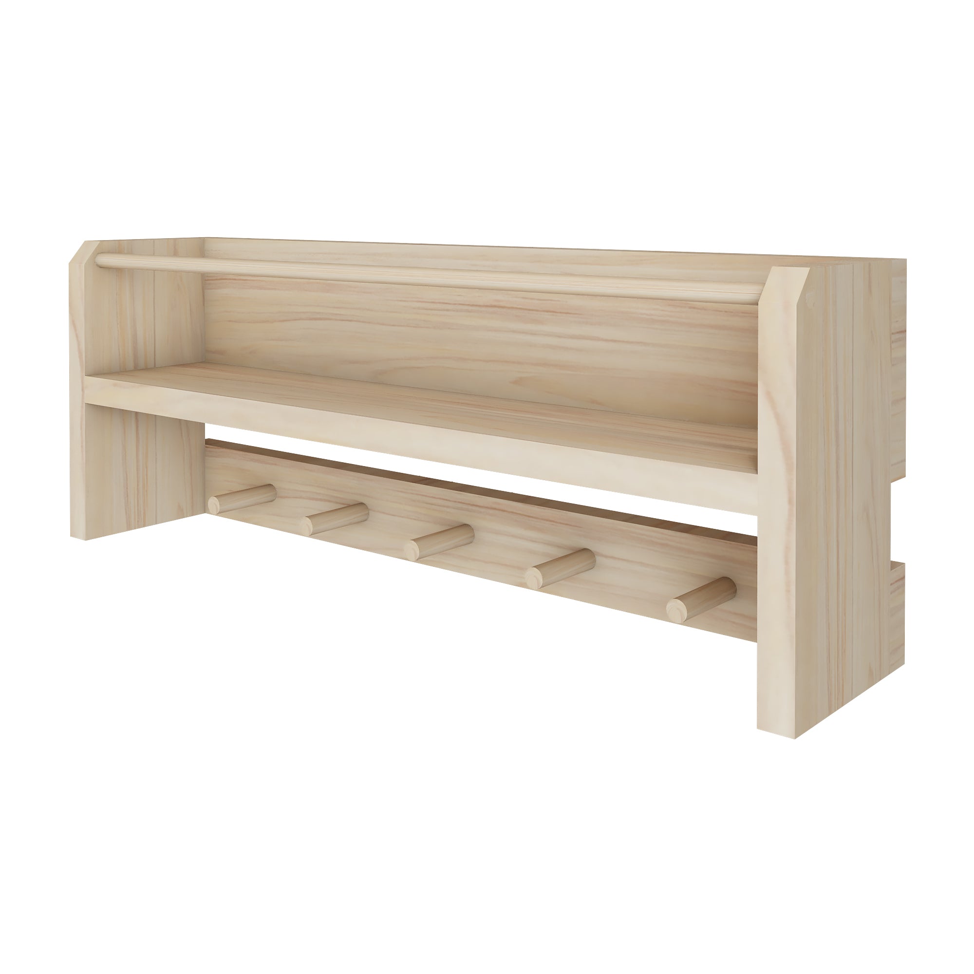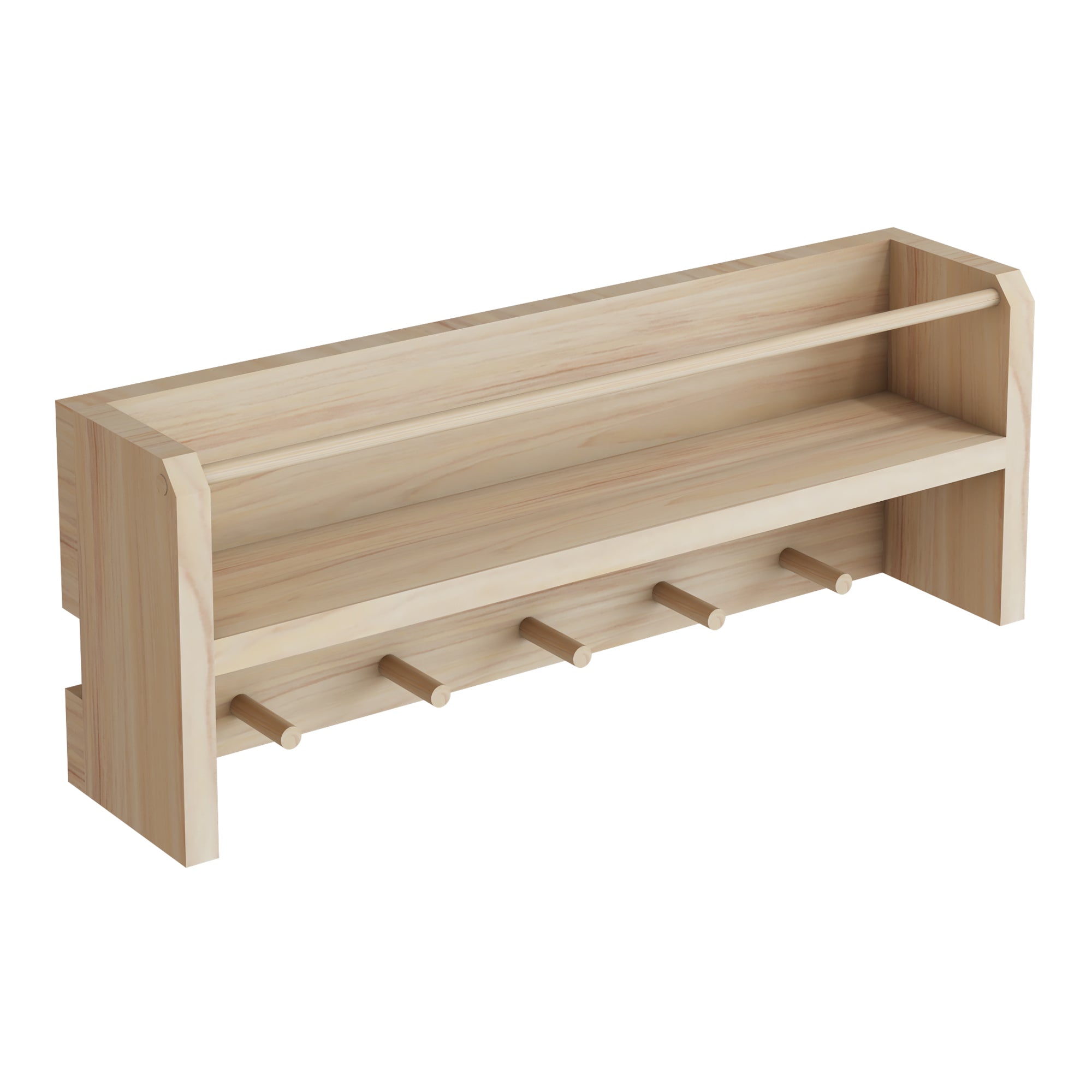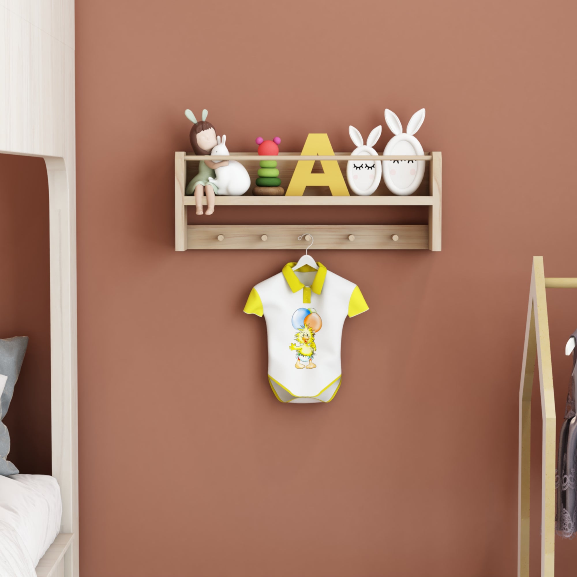 Ten wieszak ścienny z pięcioma haczykami jest idealny do wieszania ubrań. Górna półka oferuje miejsce do przechowywania wszystkich akcesoriów lub zabawek. Jest idealny do pokoju dziecięcego, ale może być również używany w każdej innej przestrzeni życiowej.