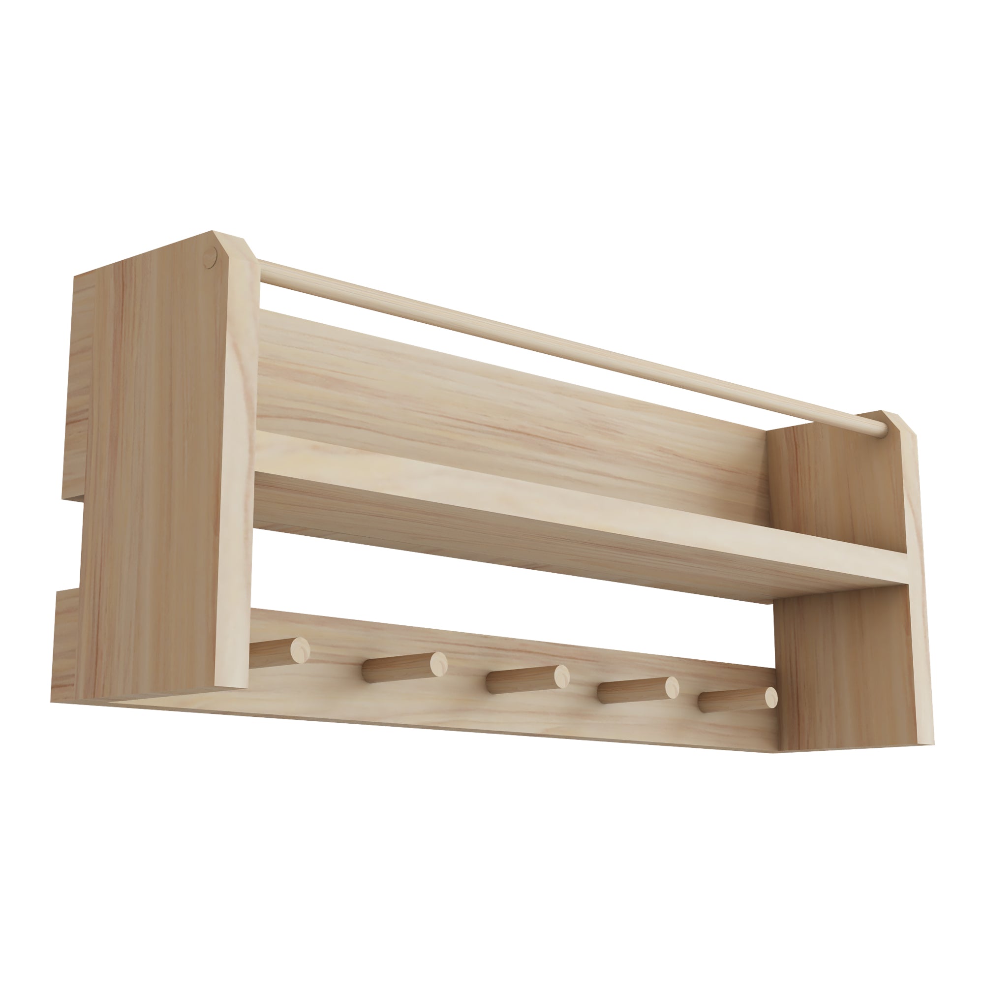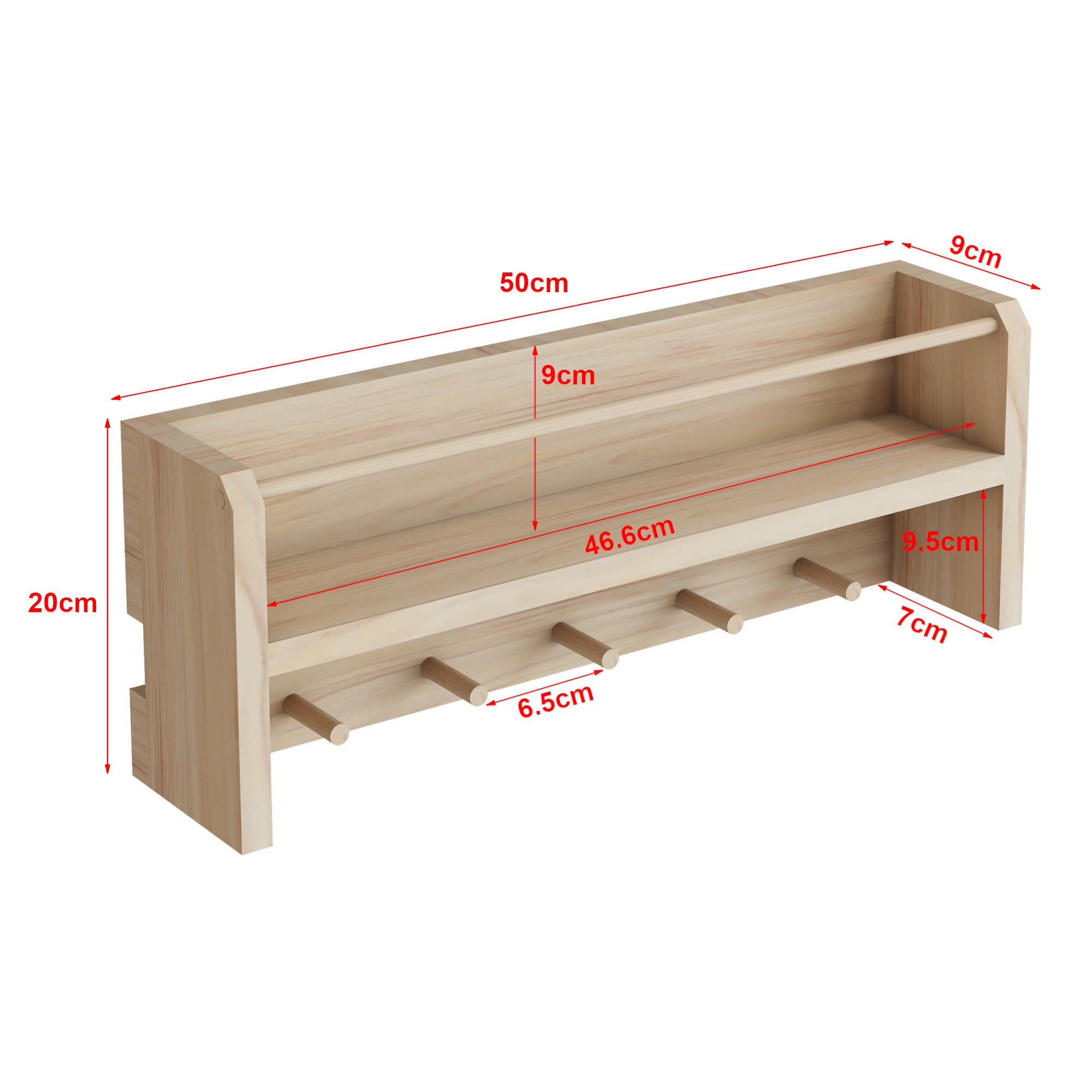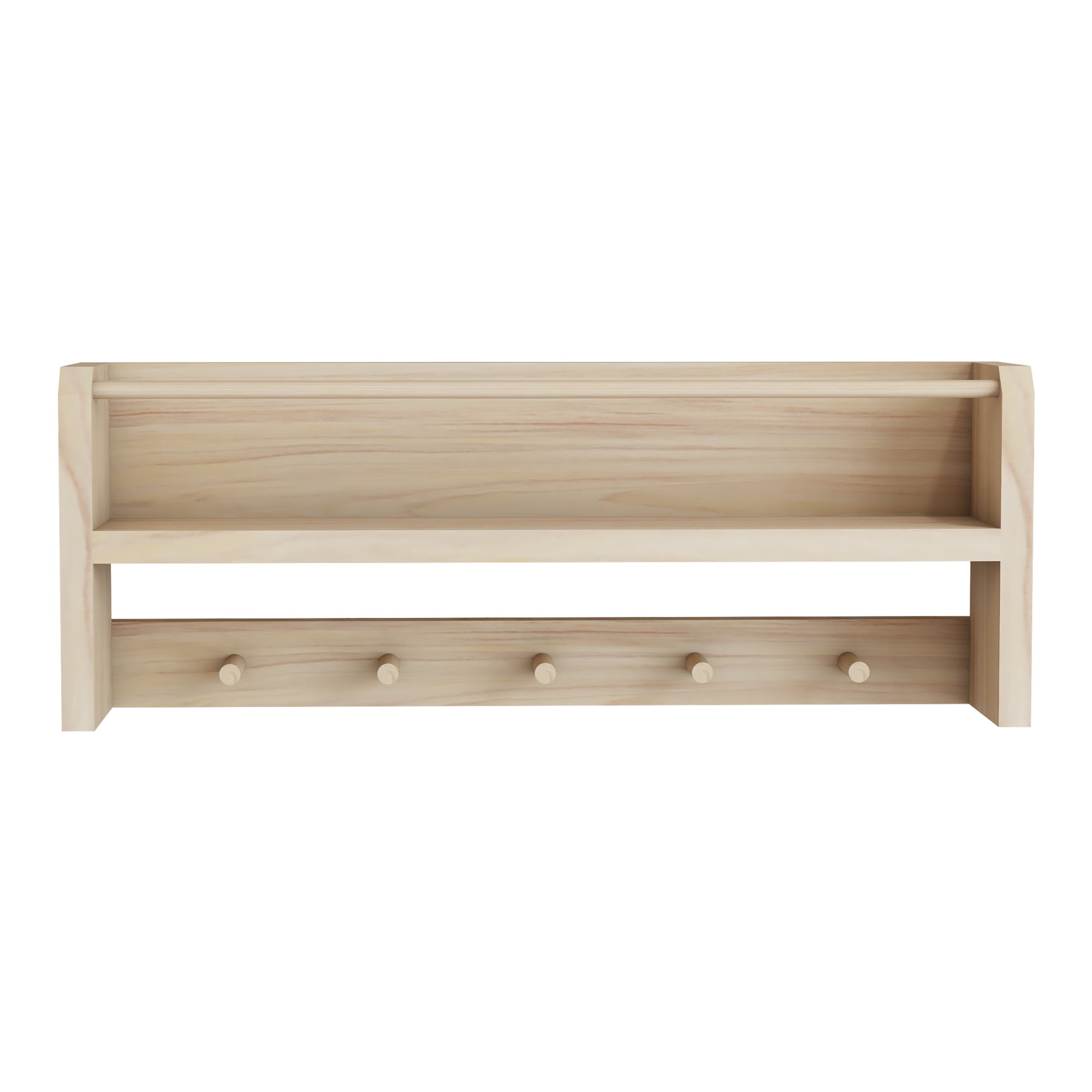 Ten wieszak ścienny z pięcioma haczykami jest idealny do wieszania ubrań. Górna półka oferuje miejsce do przechowywania wszystkich akcesoriów lub zabawek. Jest idealny do pokoju dziecięcego, ale może być również używany w każdej innej przestrzeni życiowej.