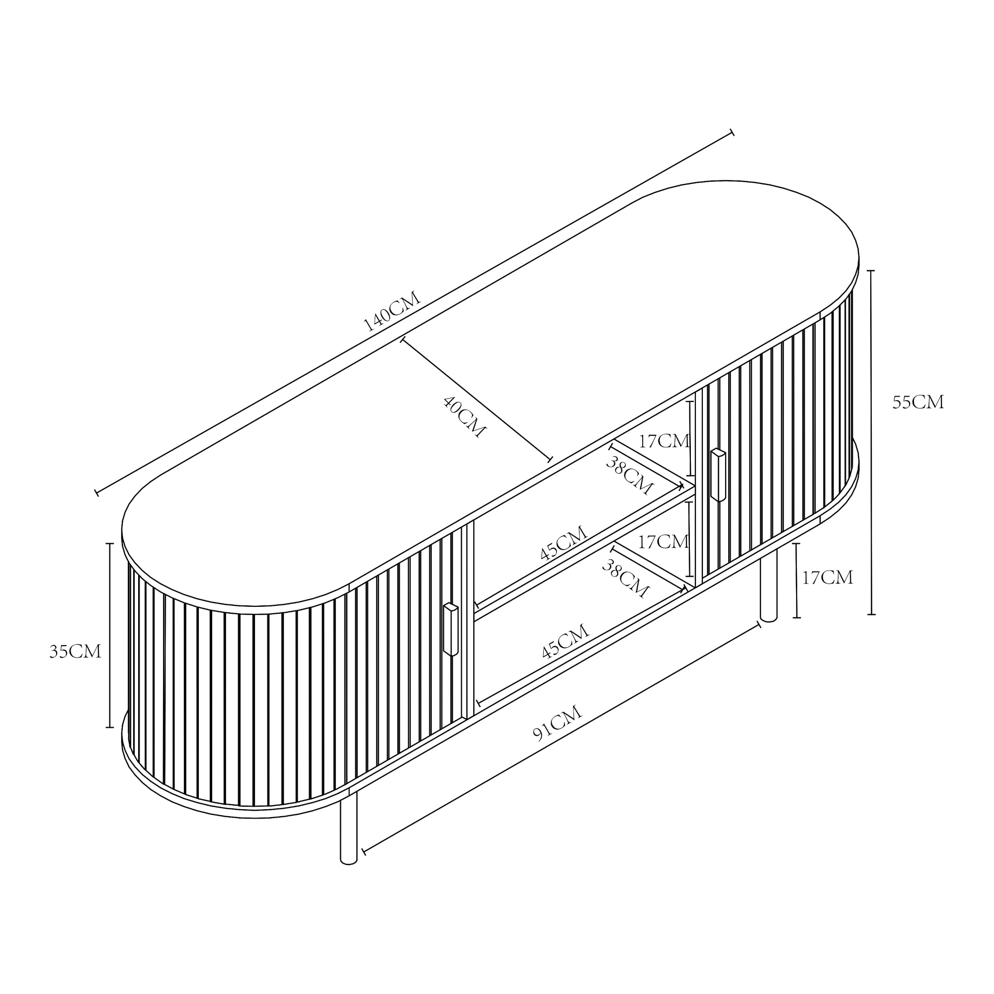 - Otwarty schowek (dł. x szer. x wys.): 45 x 38 x 17 cm każdy