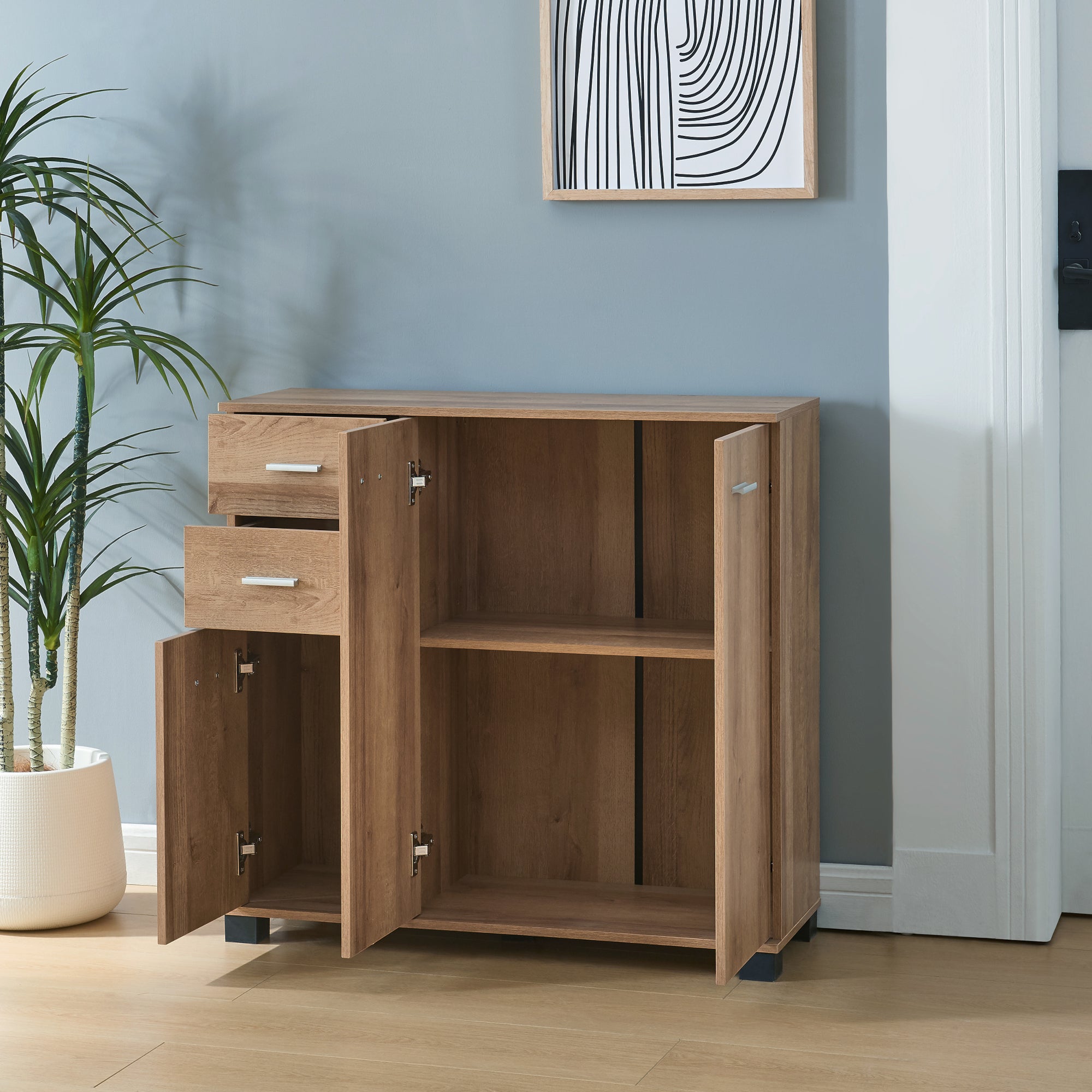 Nasza komoda z trzema drzwiami i dwoma szufladami to idealne rozwiązanie do schludnego i stylowego przechowywania przedmiotów domowych. Dzięki przemyślanemu projektowi i wszechstronnym możliwościom zastosowania doskonale sprawdzi się w różnych częściach Twojego domu. Zachwyca nie tylko estetycznym wyglądem, ale także praktycznymi miejscami do przechowywania wewnątrz.
