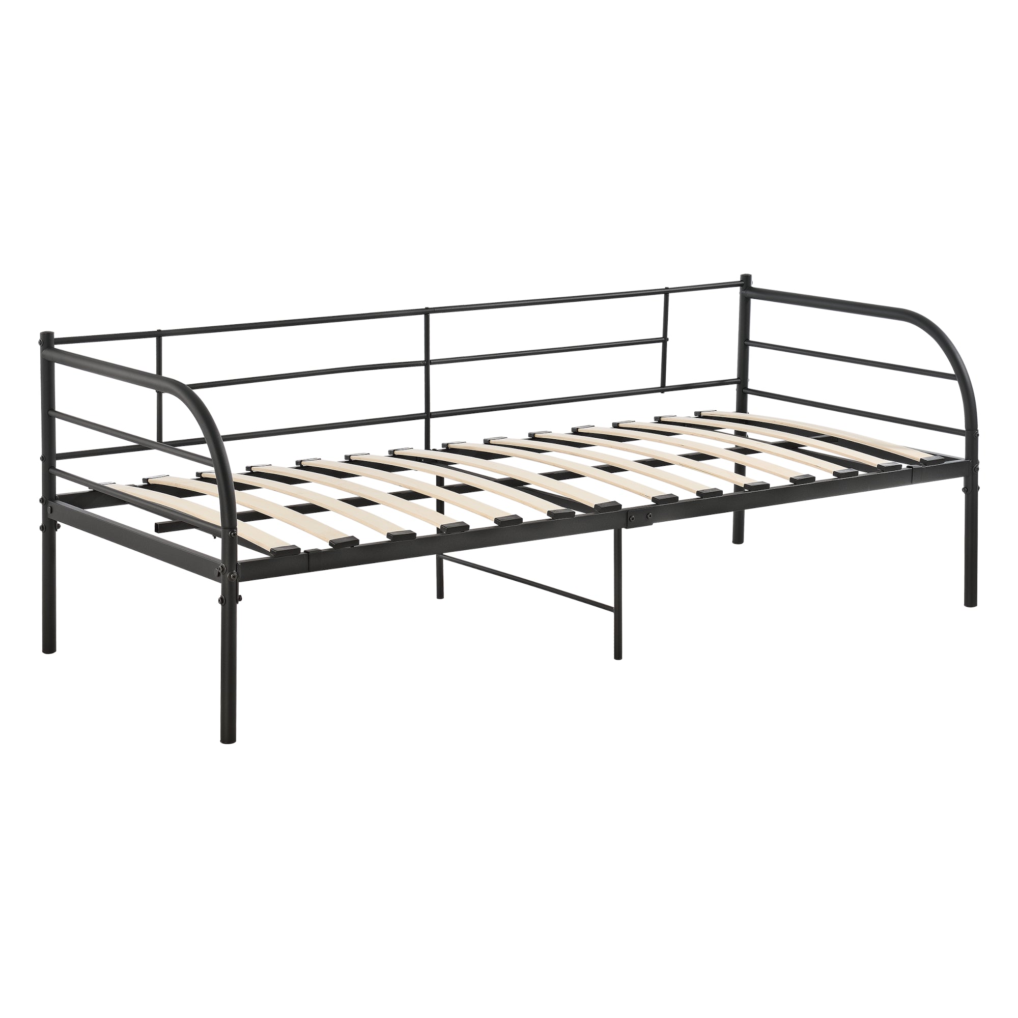 Praktyczne i stabilne łóżko dzienne ma solidną konstrukcję z metalu. Mocne listwy zapewniają niezbędne wsparcie i są bardzo wygodne.