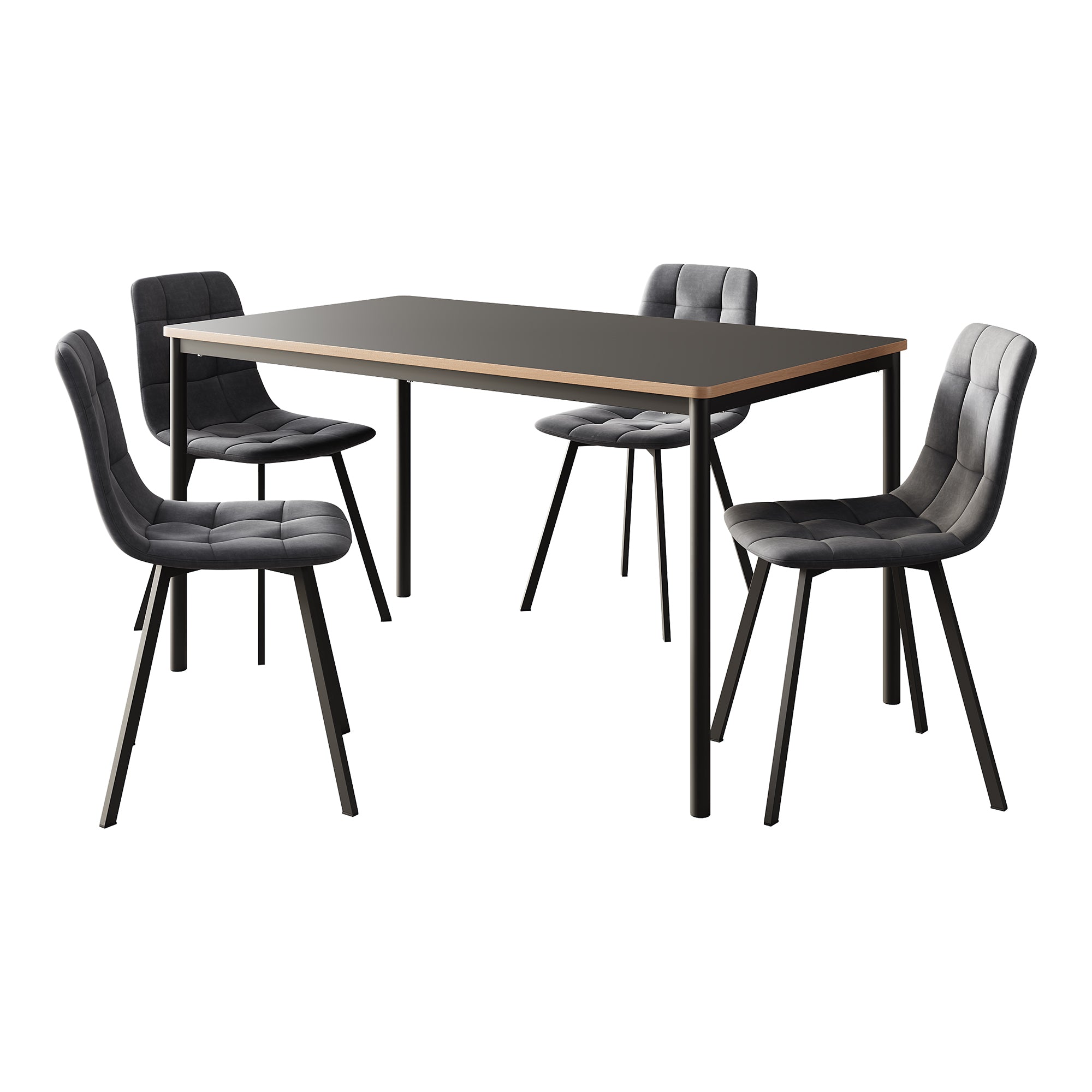 Ten elegancki zestaw do jadalni składa się ze stołu i czterech idealnie dopasowanych krzeseł. Dzięki ponadczasowemu designowi wniesie styl i komfort do każdej jadalni.