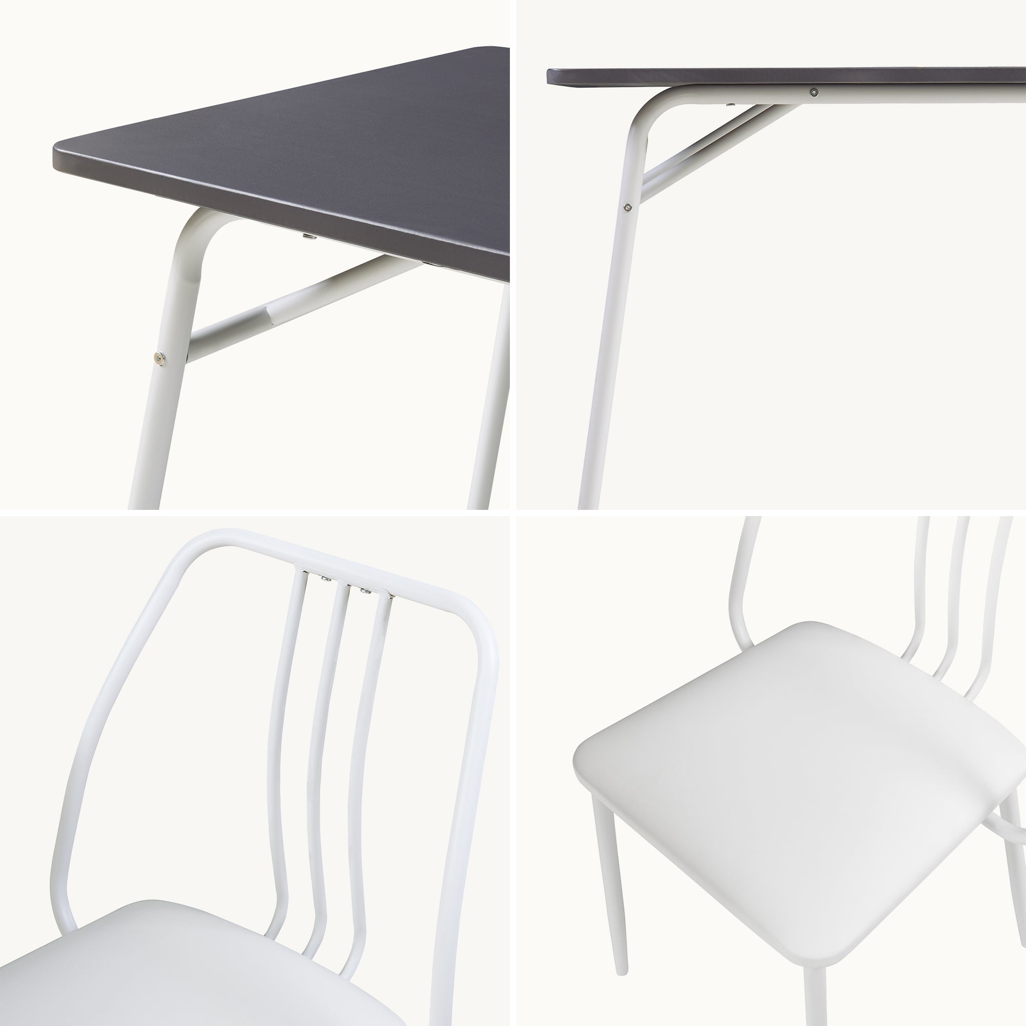 - Rama stołu i krzesła: stal, malowana proszkowo