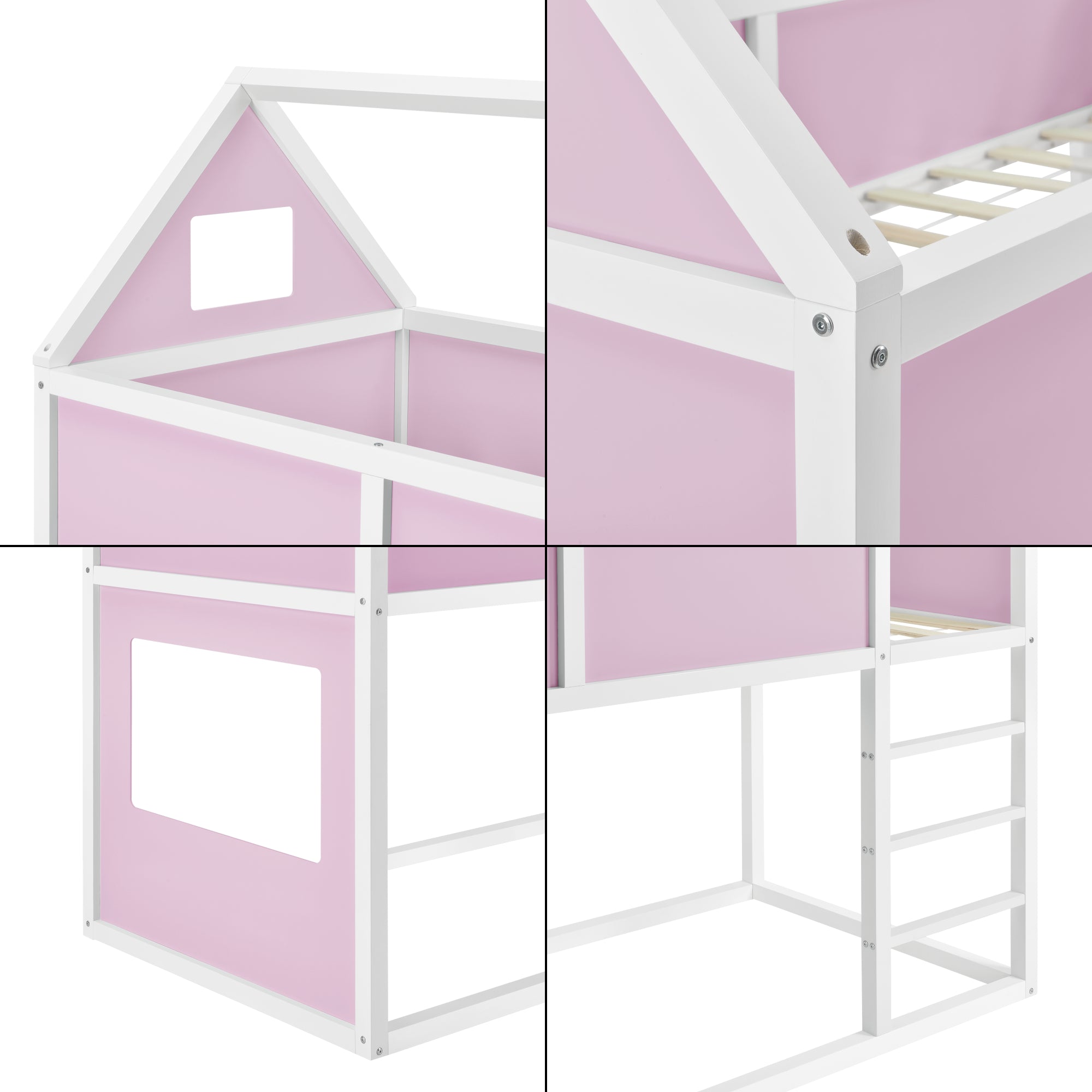 - Łóżko piętrowe dla dzieci w kształcie domu z drabinką