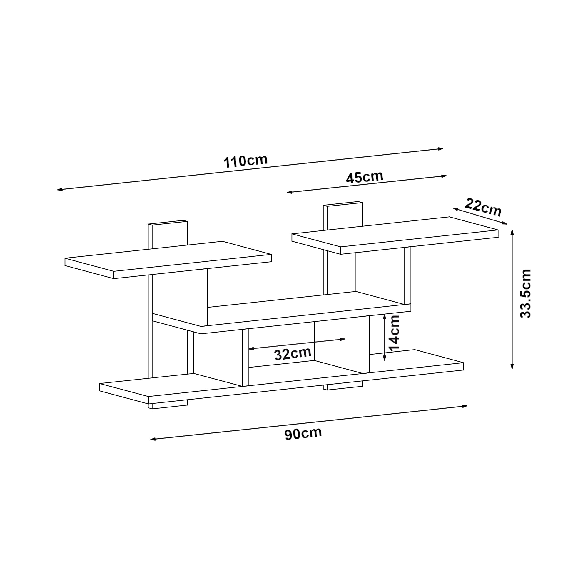- Otwarta półka (dł. x szer. x wys.): 32 x 22 x 14 cm