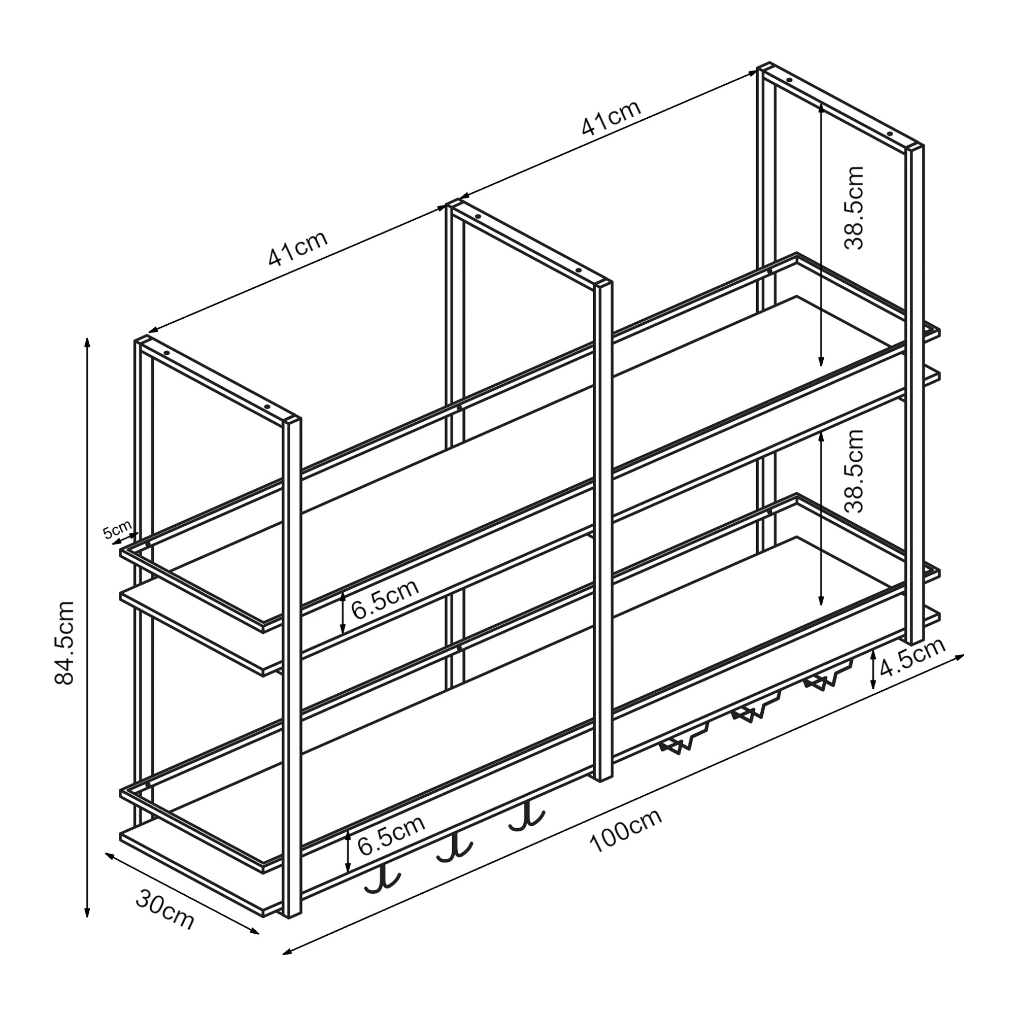 - Wysokość krawędzi półki: 6,5 cm każda
