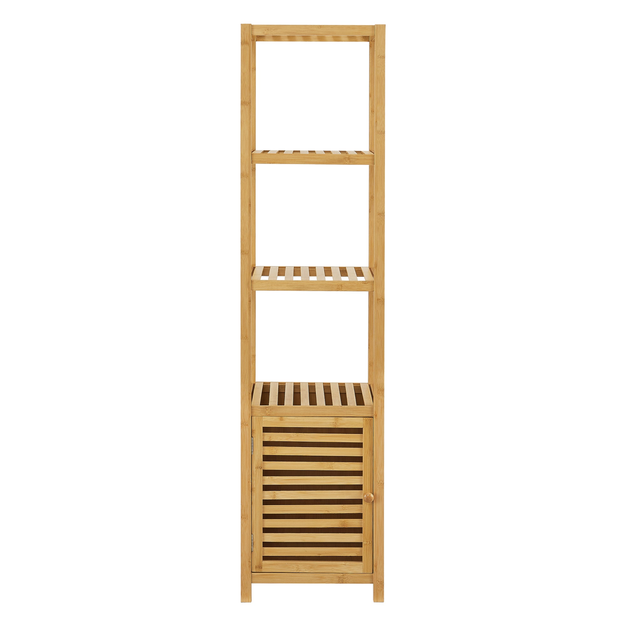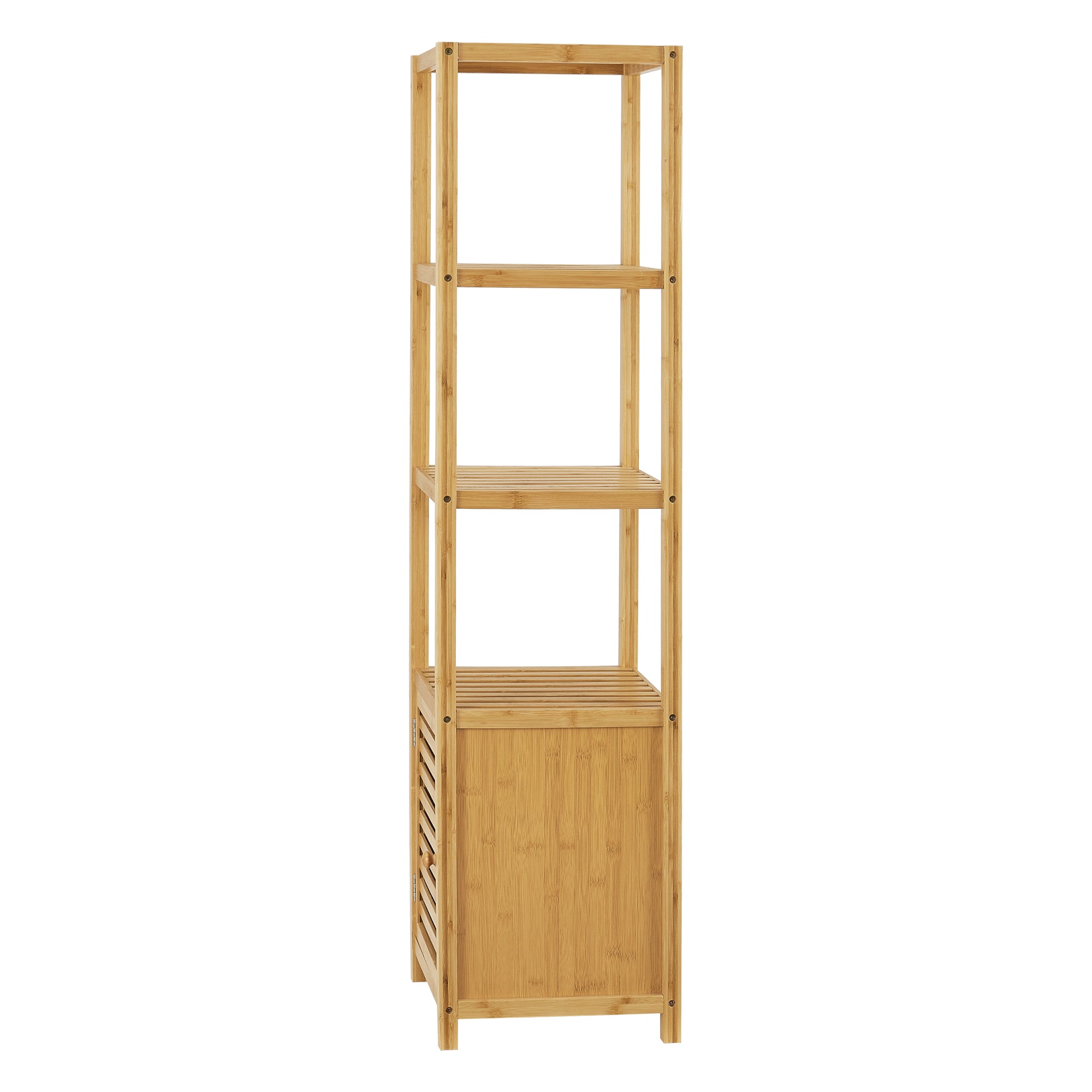 - Półka stojąca z 4 półkami i jednymi drzwiczkami szafki