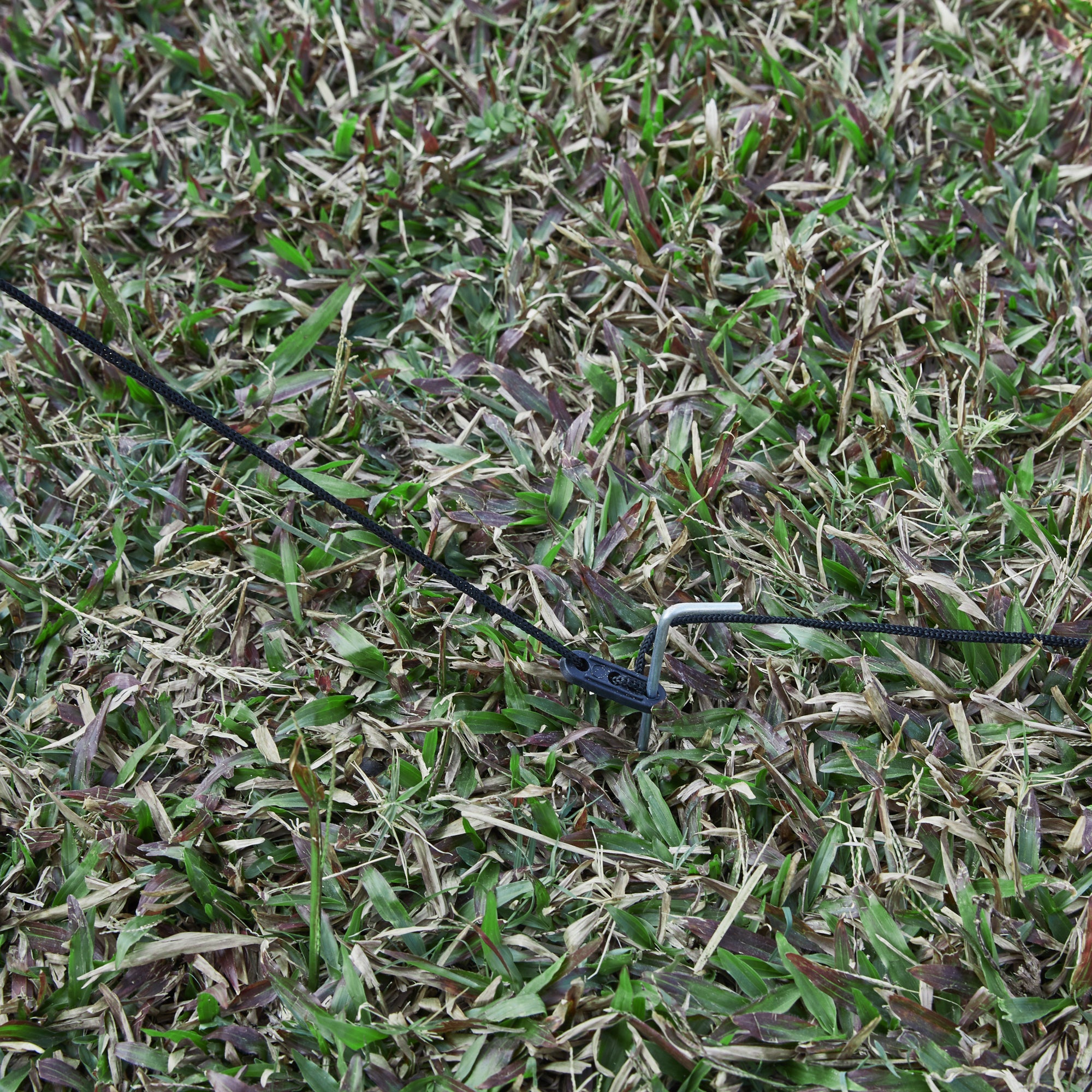 Wytrzymałe kołki, których można użyć do stabilnego zakotwiczenia namiotu na zewnątrz do podłoża, oraz liny odciągowe, które zapewniają bezpieczne oparcie nawet w wietrznych warunkach, zapewniają dodatkową stabilność i bezpieczeństwo. Dzięki temu namiot jest niezawodnym schronieniem dla wszystkich aktywności na świeżym powietrzu.
