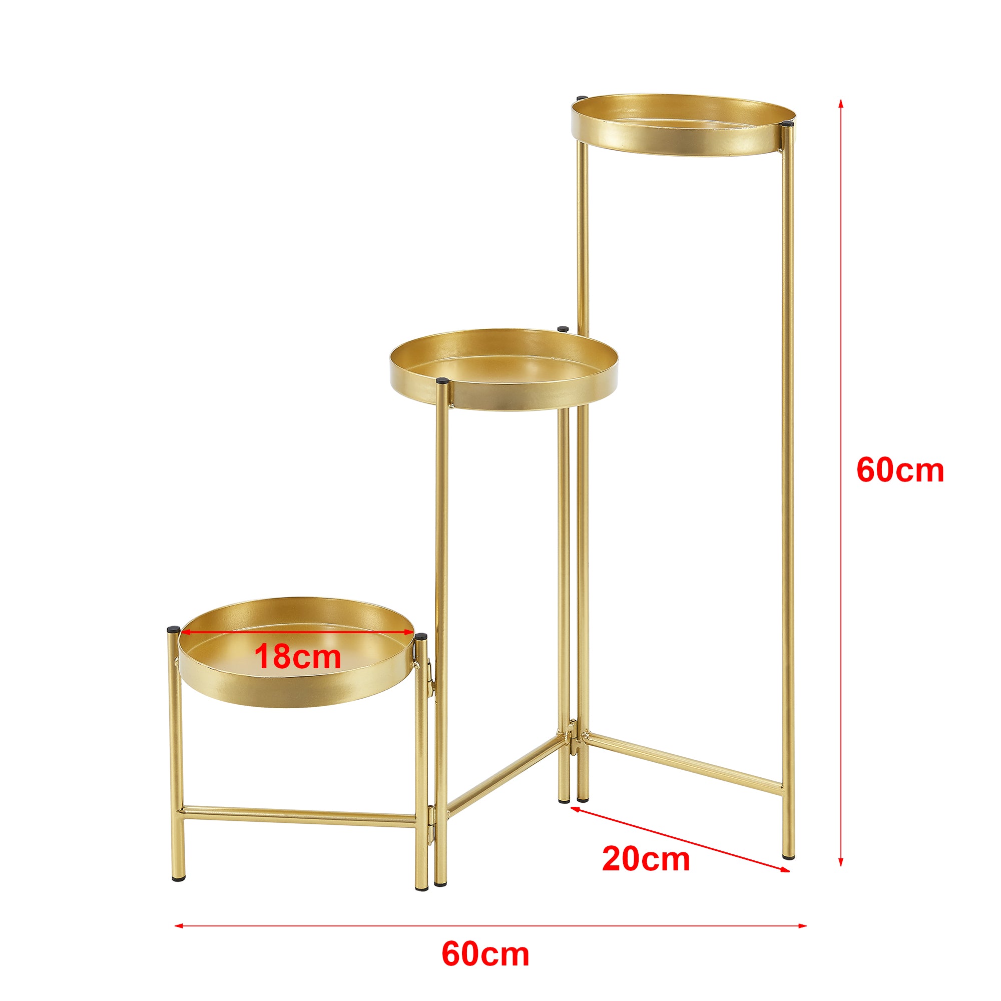 Ten oryginalny stojak na rośliny z 3 metalowymi doniczkami jest składany, dzięki czemu zajmuje bardzo mało miejsca. Dzięki ponadczasowemu i dekoracyjnemu designowi stanowi prawdziwą ozdobę w Twoim wnętrzu.