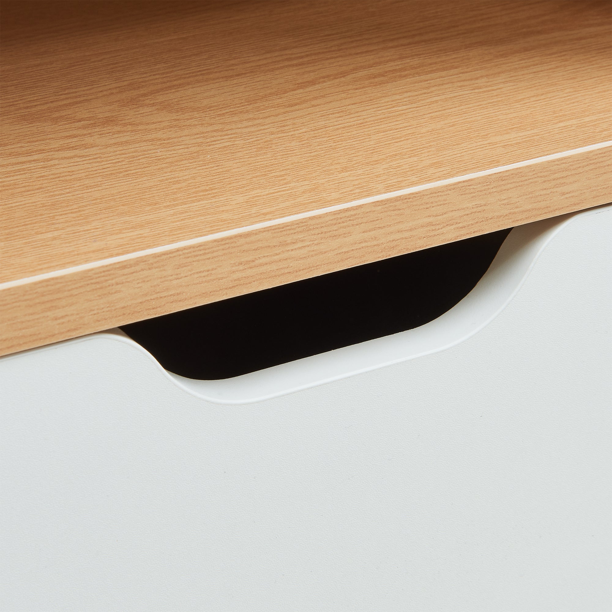 Poniżej znajduje się otwarta półka oraz szuflada, w których można schludnie przechowywać osobiste przedmioty, takie jak okulary, książka czy ładowarka. Dzięki temu wszystkie ważne akcesoria pozostają uporządkowane i zawsze pod ręką.