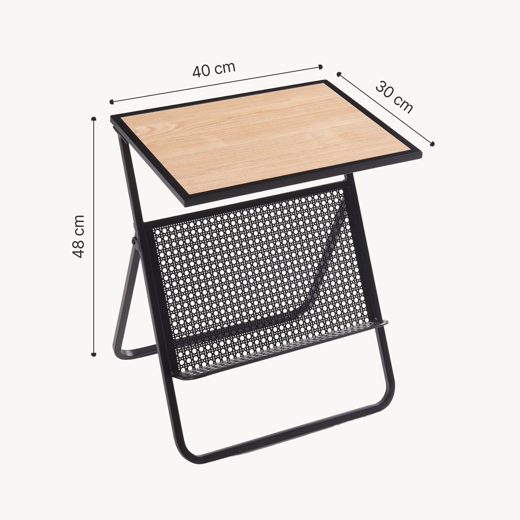 Ten stolik boczny ze stojakiem na gazety jest idealnym dodatkiem do Twojego domu i zapewnia organizację i komfort w codziennym życiu. Dzięki swojemu ponadczasowemu, eleganckiemu wyglądowi wzbogaci każdą przestrzeń życiową, czy to salon, sypialnię czy domowe biuro.