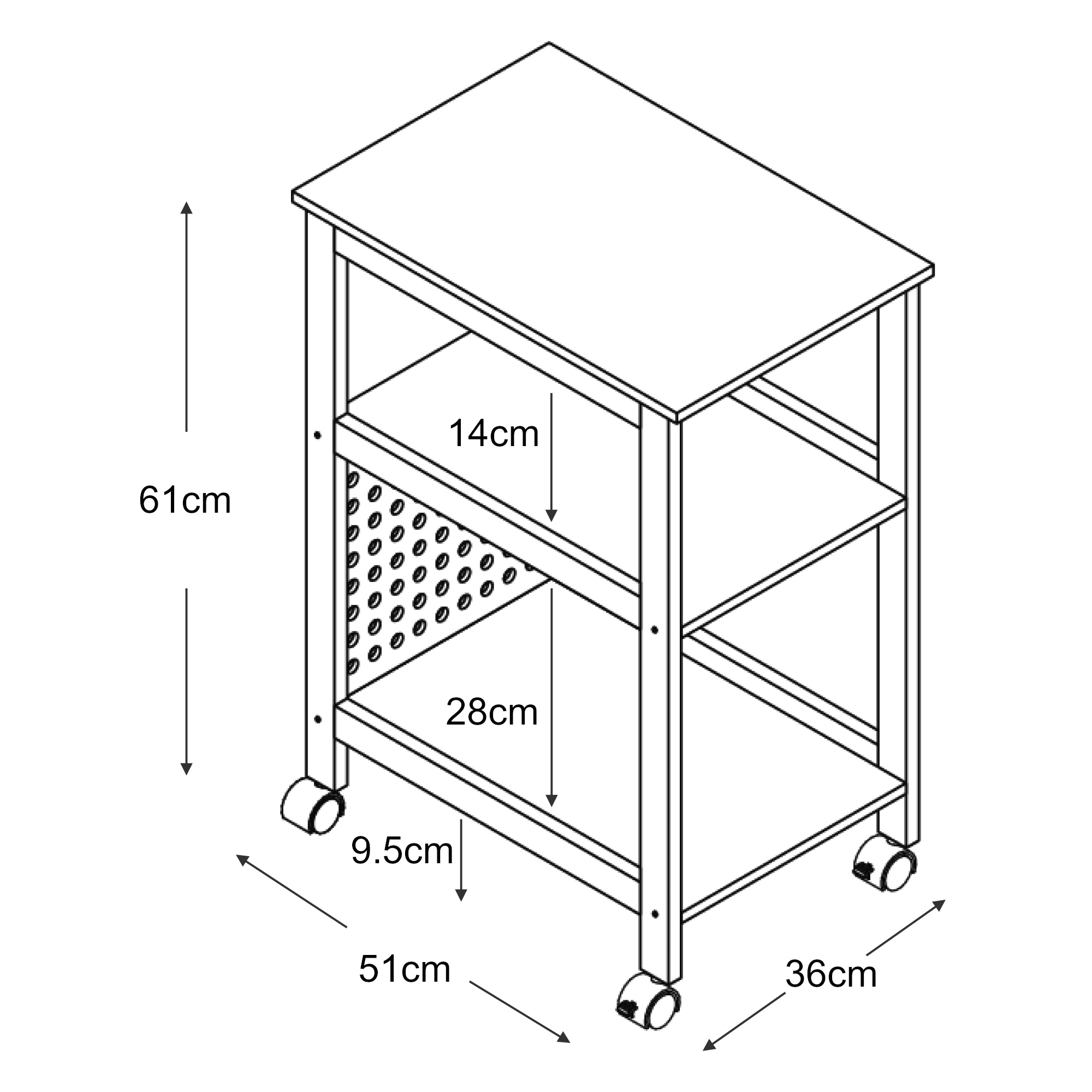Ponadto doskonale sprawdza się jako wózek do serwowania, a blat i dwie dolne półki zapewniają dużo miejsca na naczynia, napoje, przekąski i inne niezbędne przedmioty.