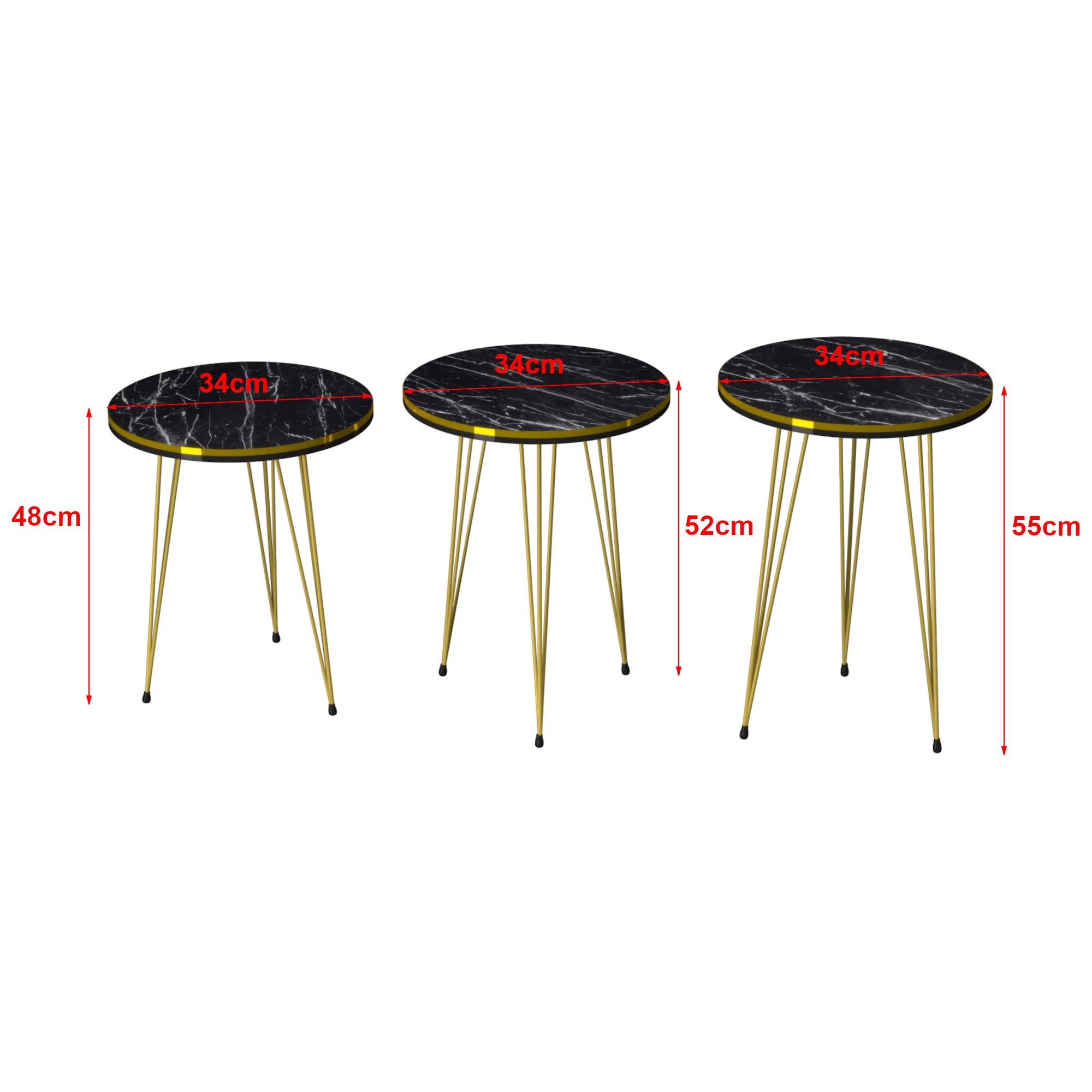 - Średni stolik (HxØ): 52 x 34 cm