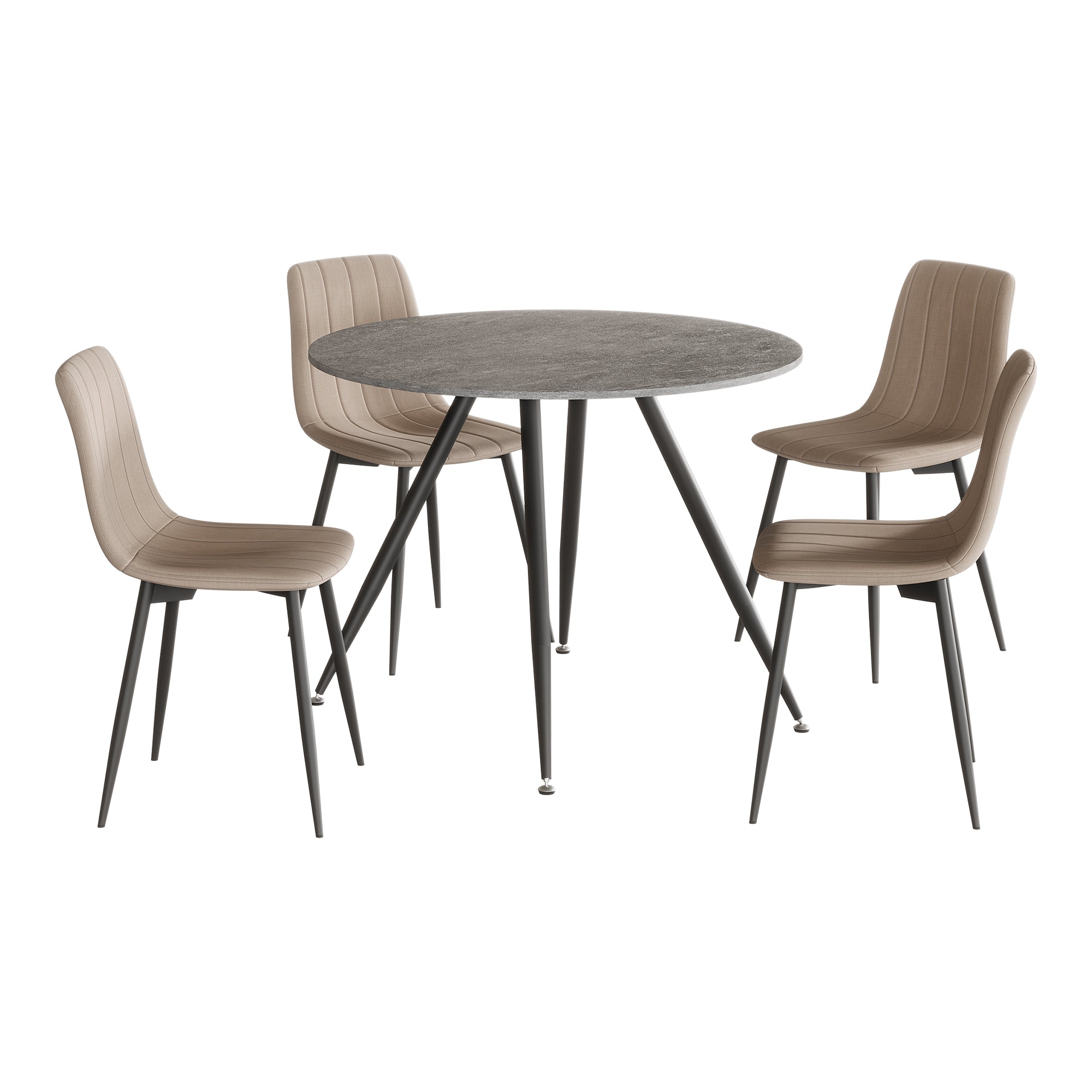Ten elegancki zestaw do jadalni składa się ze stołu i czterech idealnie dopasowanych krzeseł. Dzięki ponadczasowemu designowi wniesie styl i komfort do każdej jadalni.
