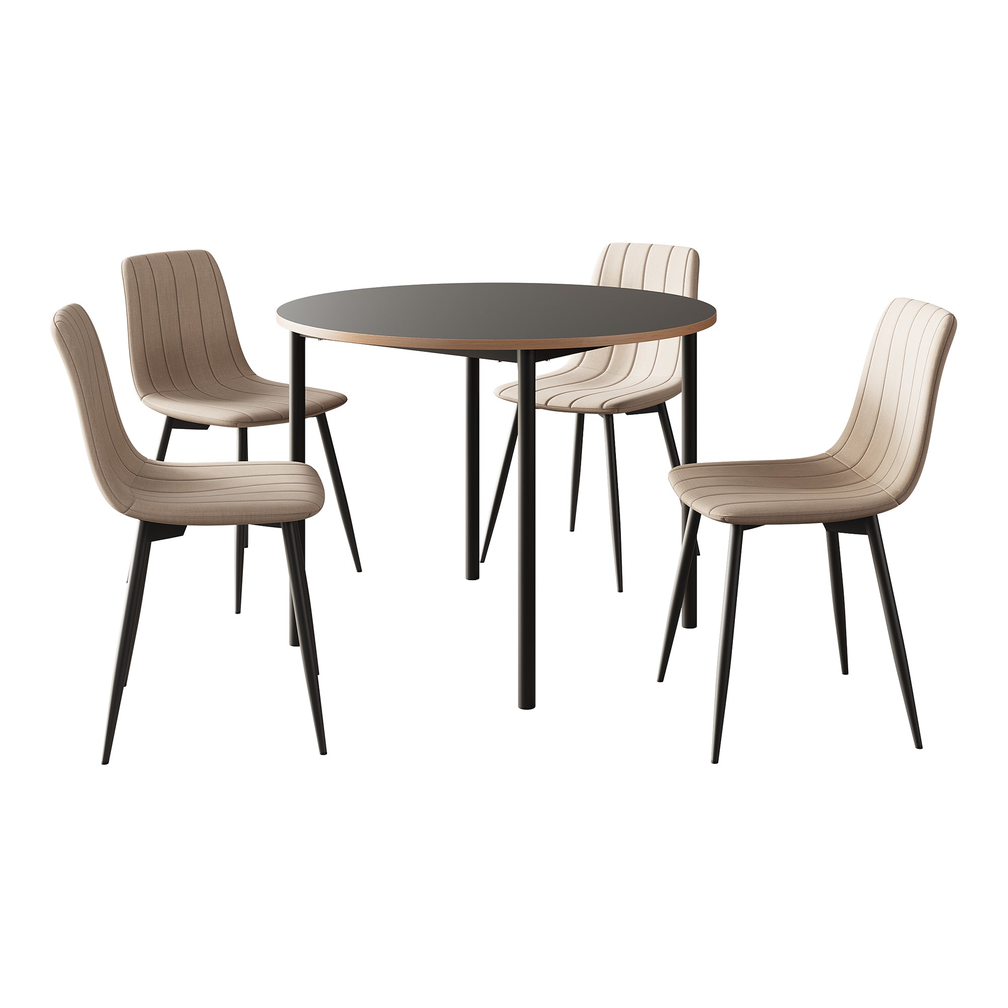 Ten elegancki zestaw do jadalni składa się ze stołu i czterech idealnie dopasowanych krzeseł. Dzięki ponadczasowemu designowi wniesie styl i komfort do każdej jadalni.