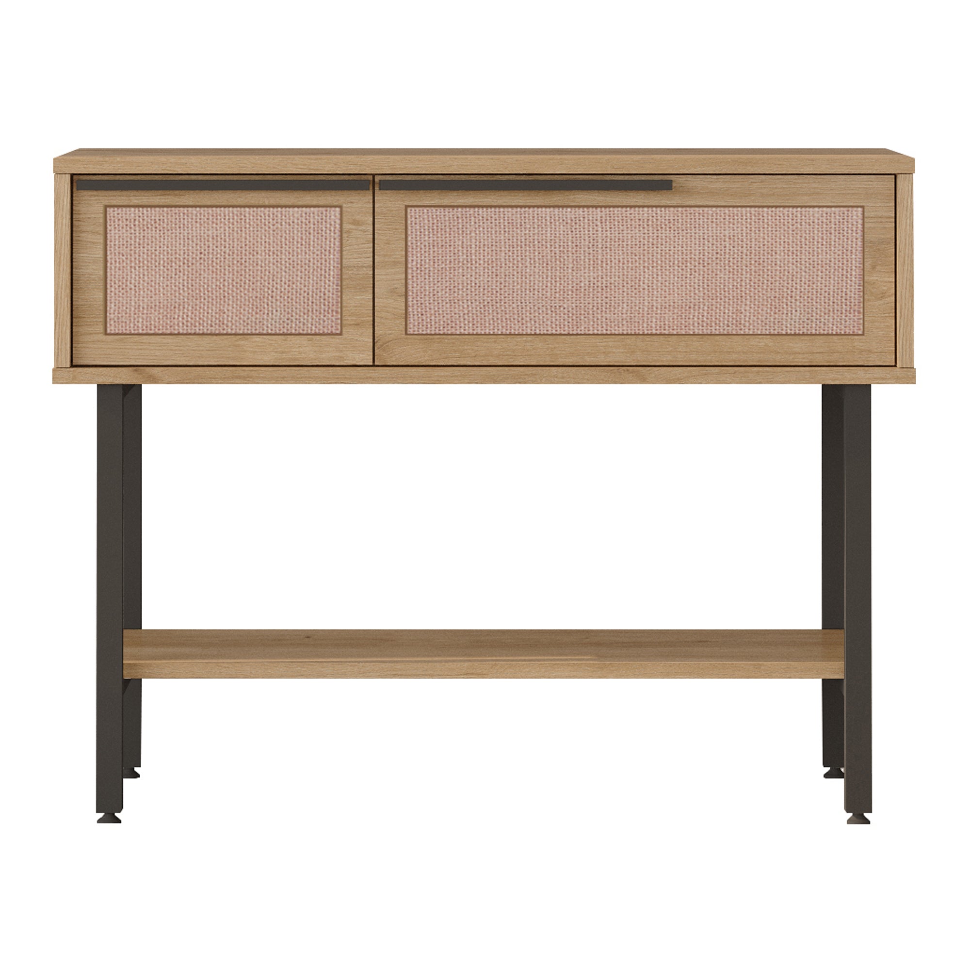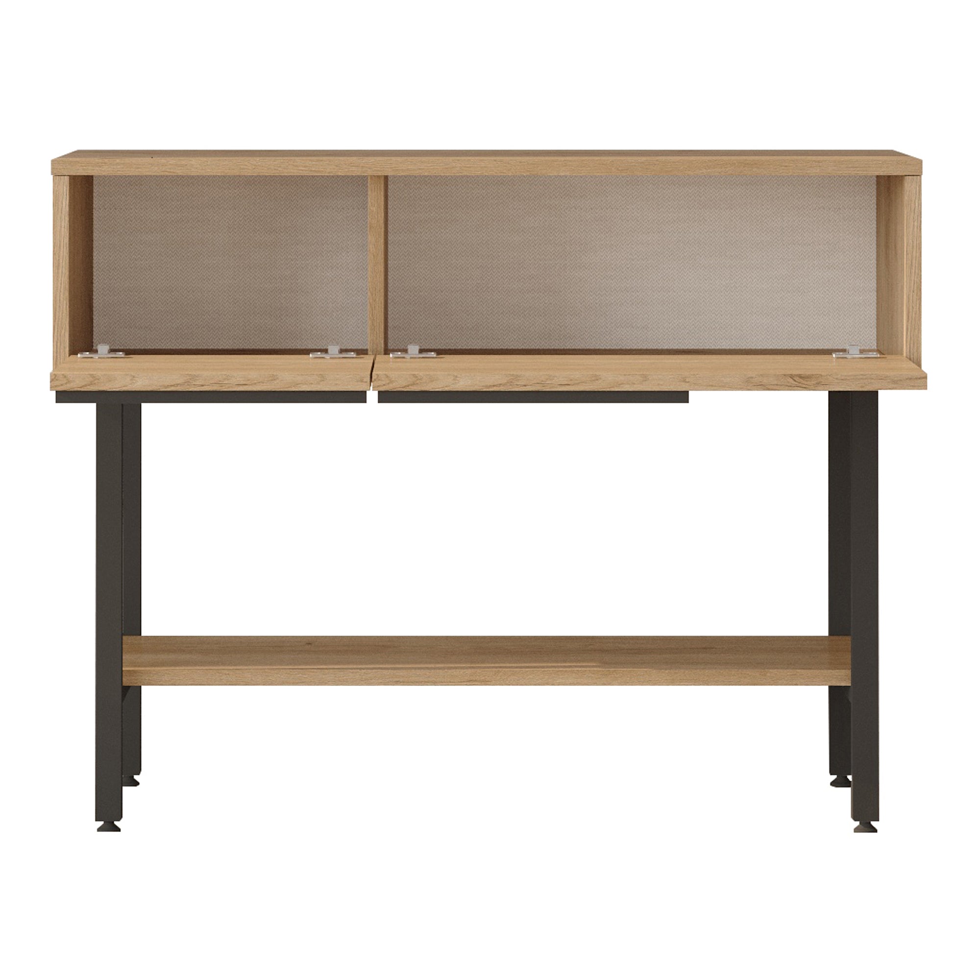 Ten dekoracyjny i praktyczny stolik konsolowy ma duży blat i jest idealny dla każdego domu. Dolna półka i dwa składane schowki zapewniają dodatkowe miejsce do przechowywania.
