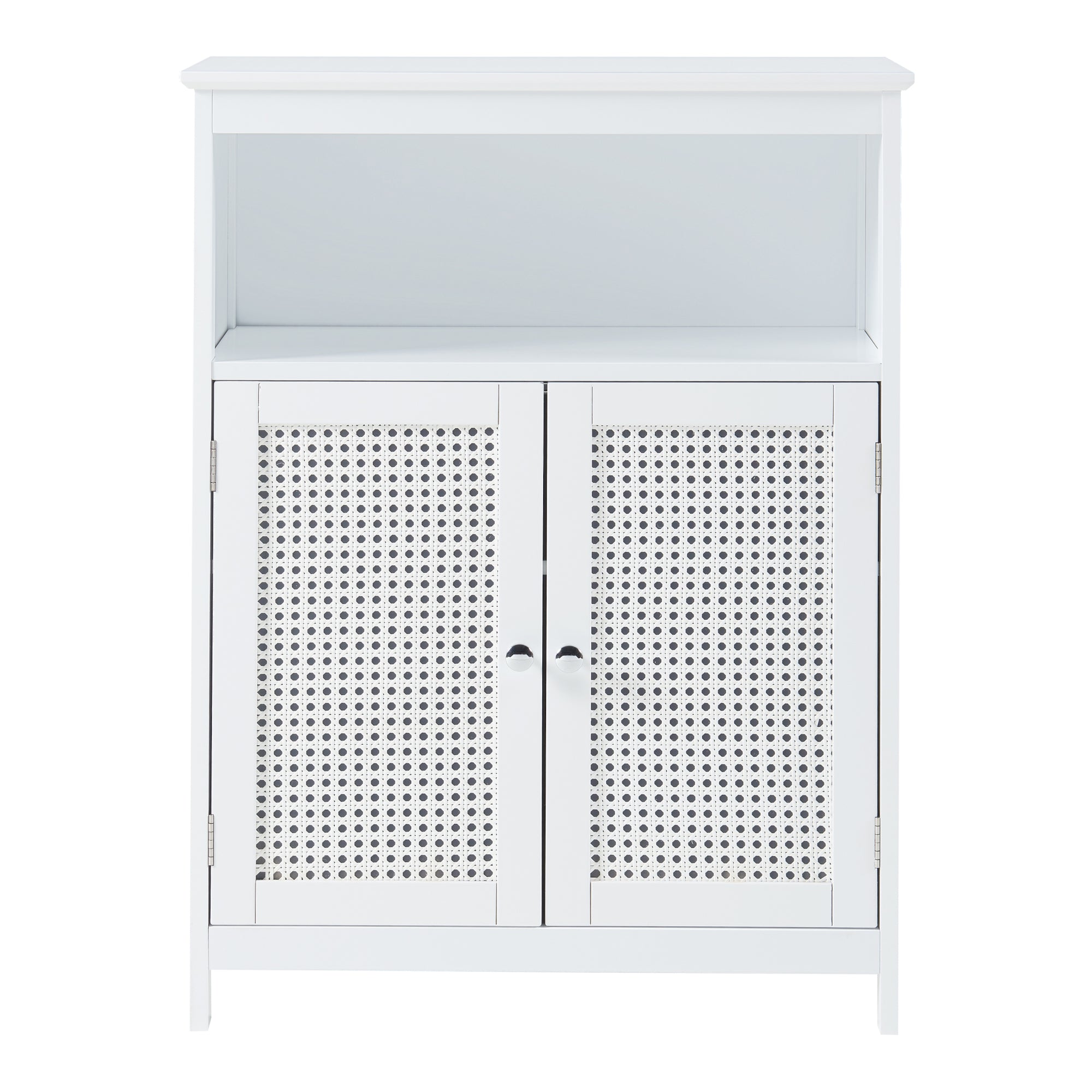 Wewnątrz szafki znajduje się dodatkowa półka, która pozwala optymalnie wykorzystać dostępną przestrzeń. Możesz przechowywać różne małe przedmioty, takie jak kosmetyki, suszarki do włosów lub inne ważne przedmioty, uporządkowane i łatwo dostępne.