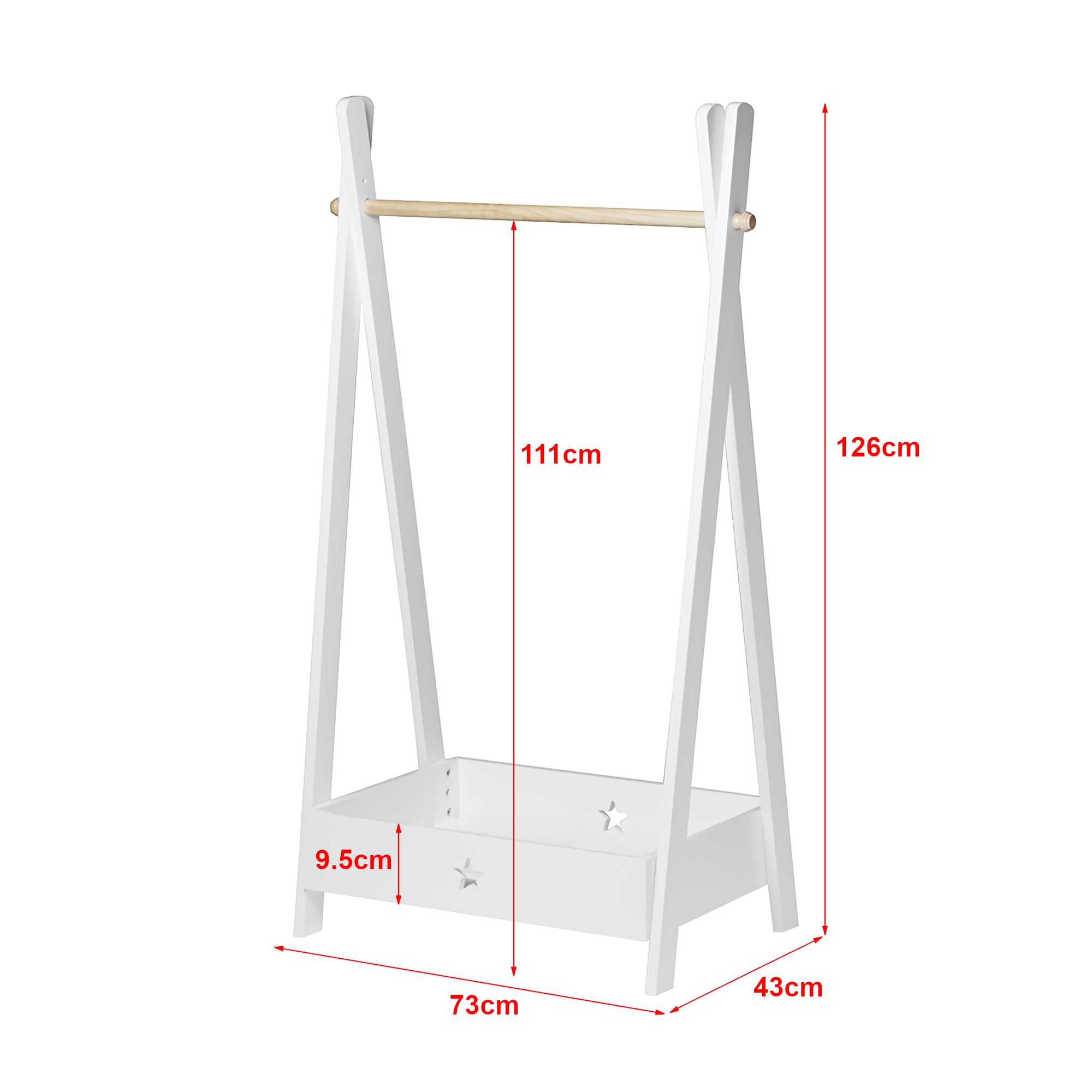 Idealny dodatek do każdego pokoju dziecięcego - nasza dziecięca szafa ze schowkiem pozwala zawsze mieć pod ręką ulubione przedmioty. Otwarty i duży schowek oferuje idealne miejsce na buty, torby lub zabawki. Oferuje również dużo miejsca na powieszenie ubrań dziecka dzięki drążkowi na ubrania.