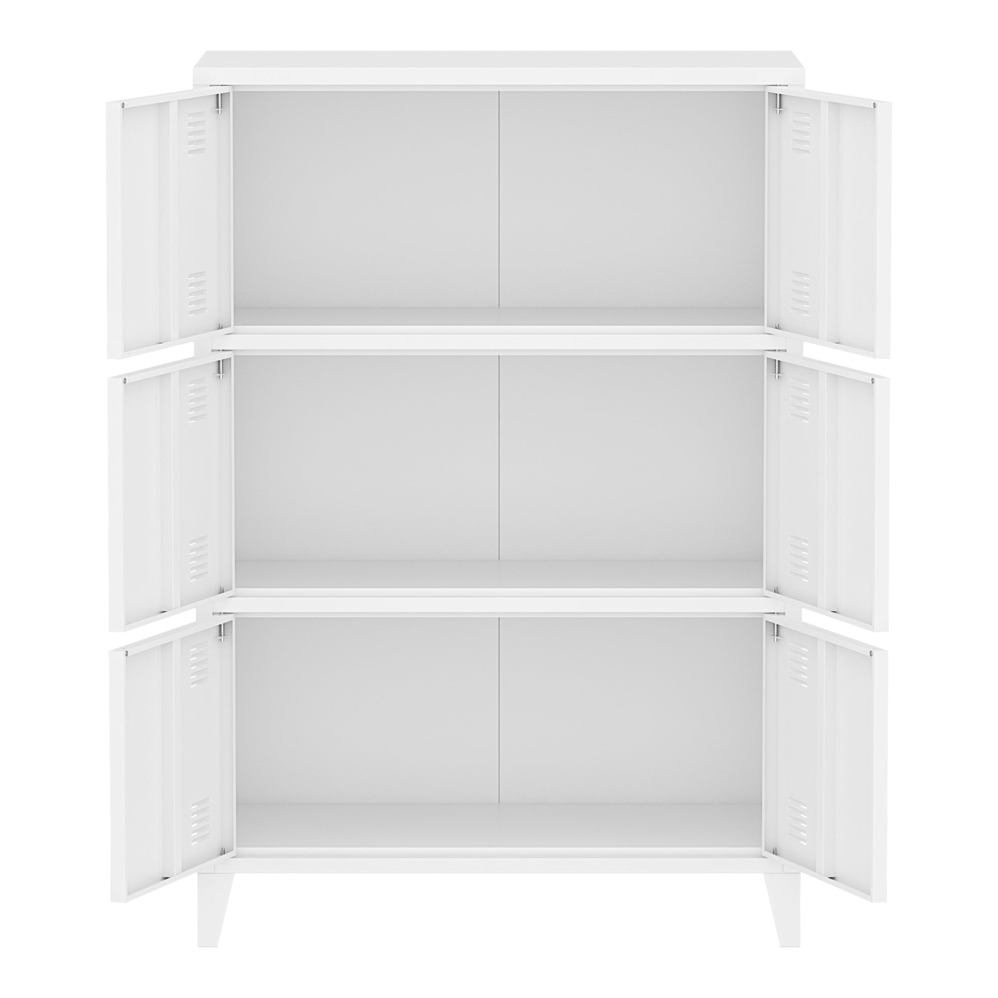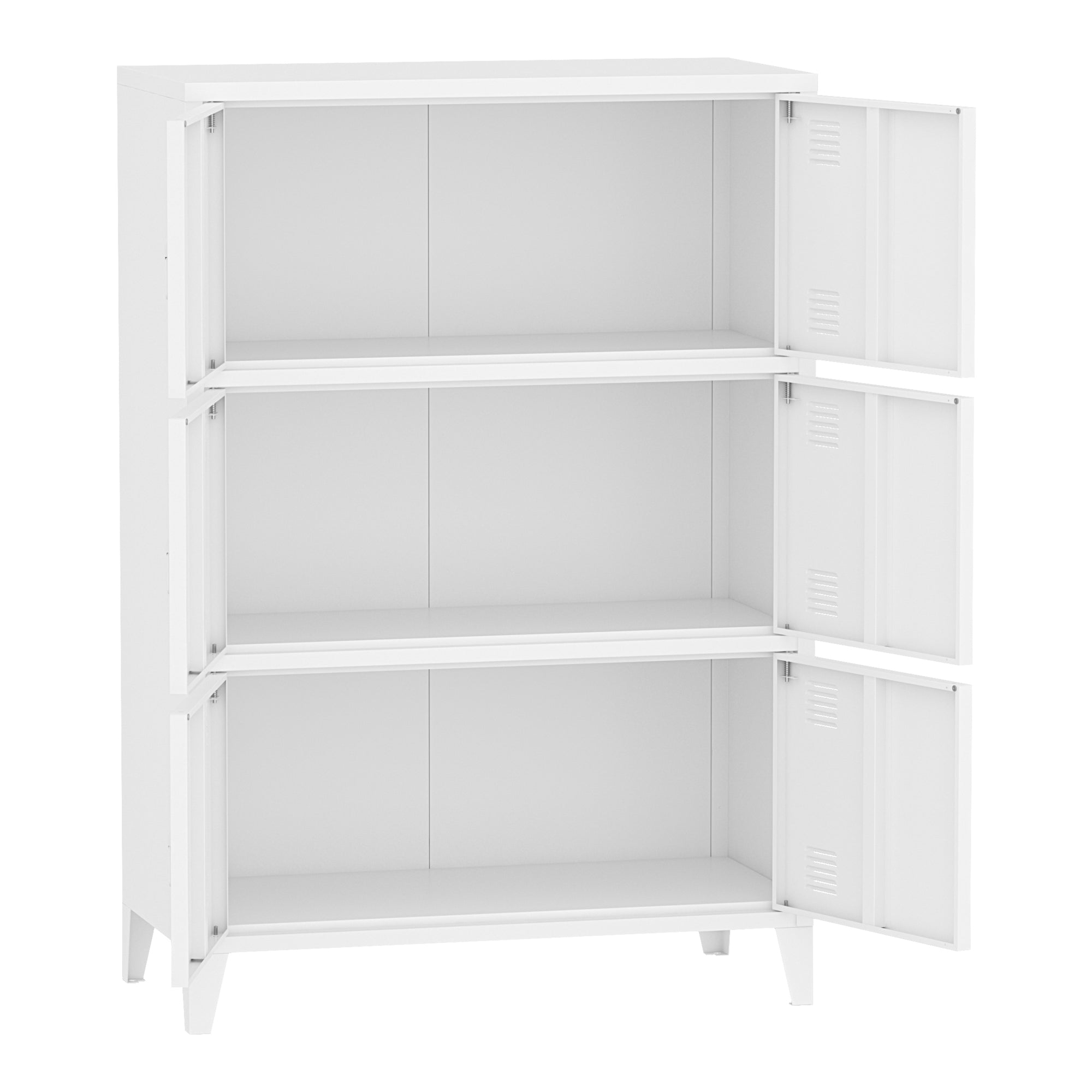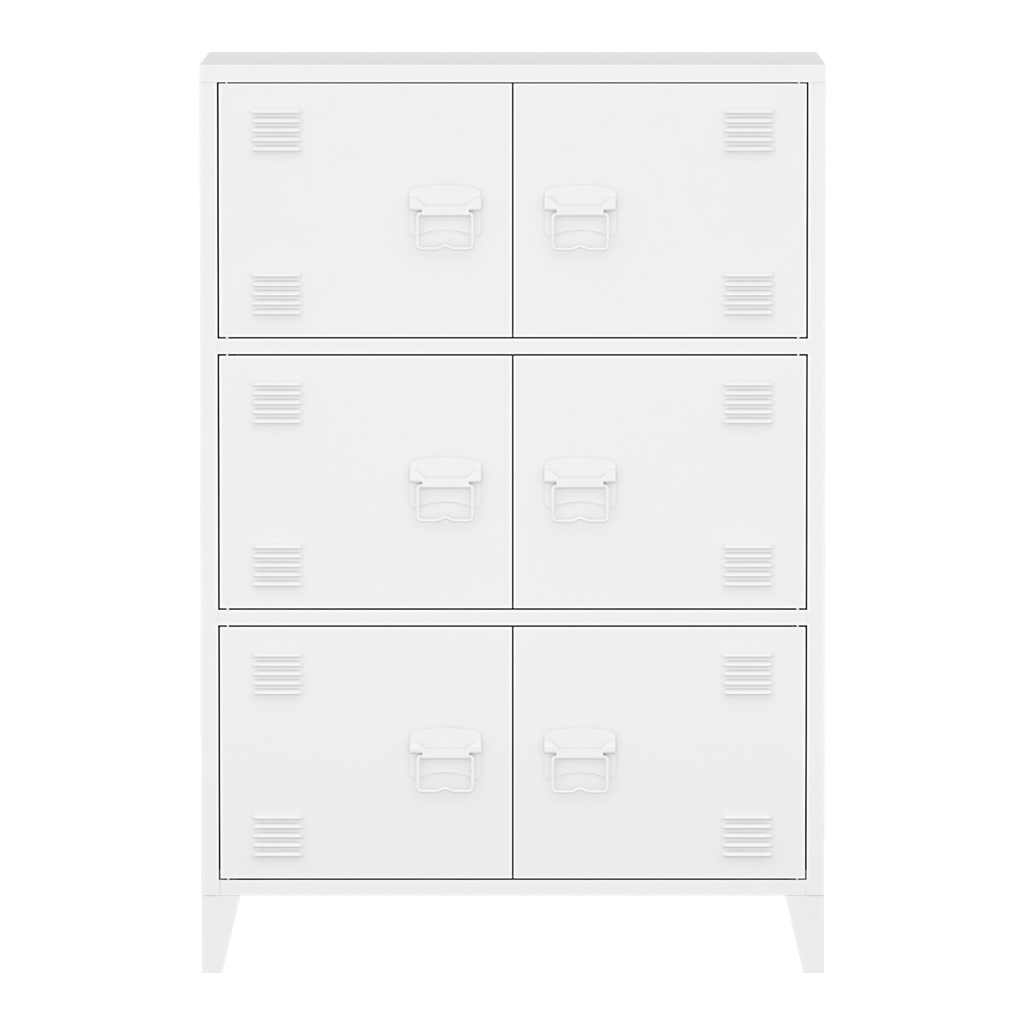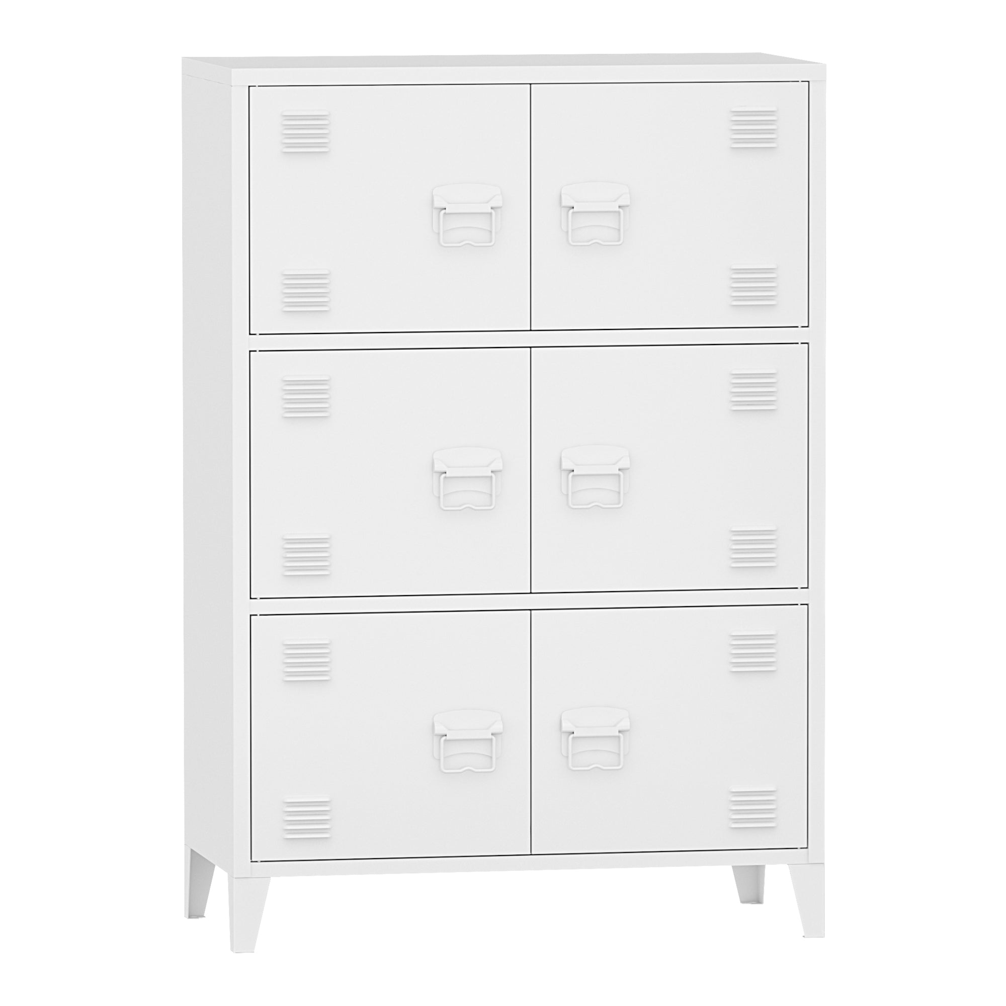 Dzięki łącznie sześciu drzwiom i trzem przegrodom wewnątrz, szafka oferuje doskonały sposób na przechowywanie wszelkiego rodzaju przedmiotów w zorganizowany sposób, niezależnie od tego, czy są to materiały biurowe, narzędzia czy przybory domowe.