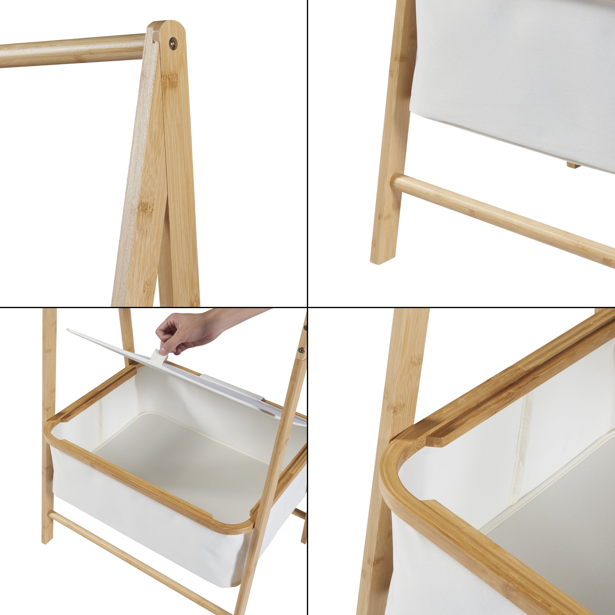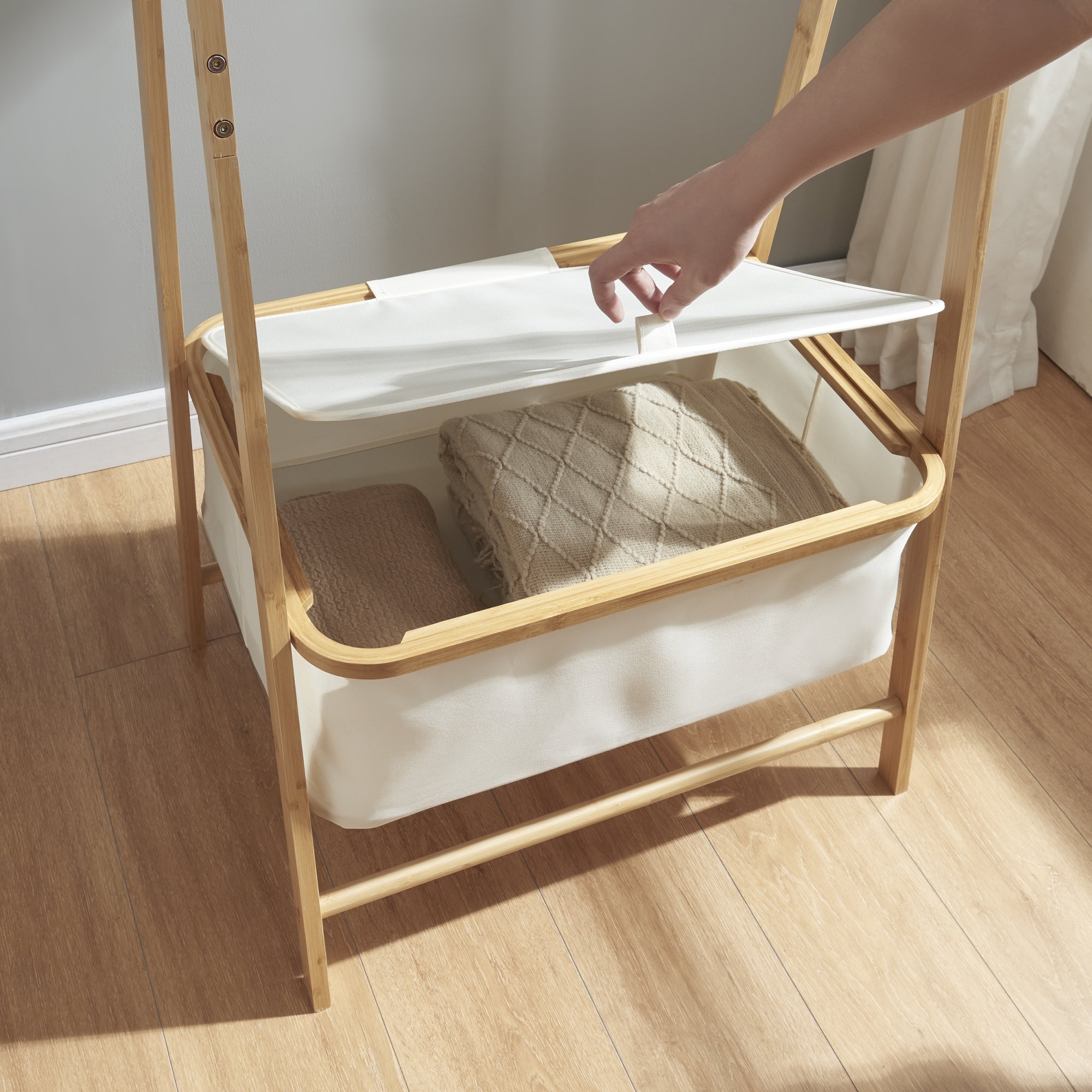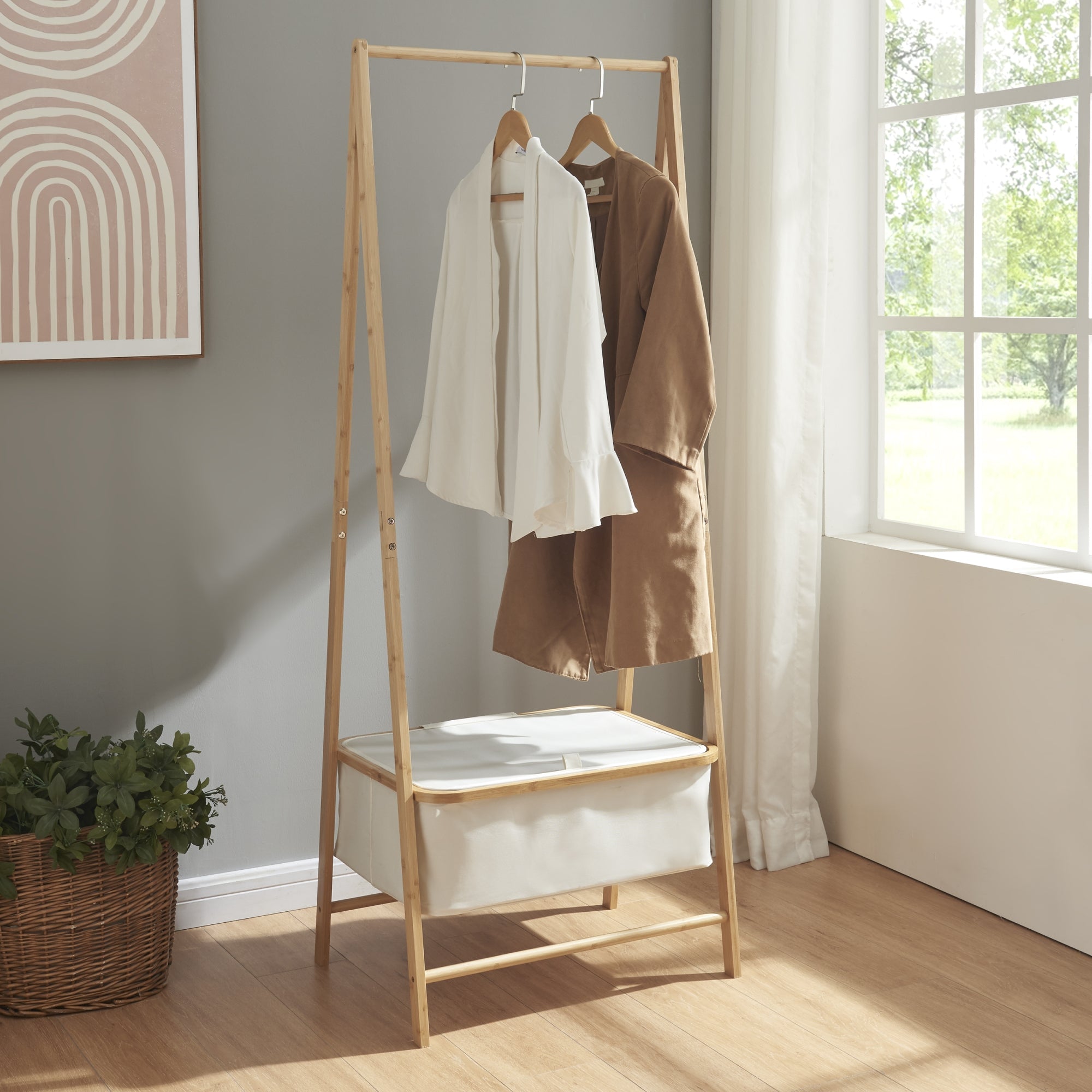 Wieszak na ubrania oferuje mnóstwo miejsca na kurtki, płaszcze, szaliki i nie tylko. Dolny schowek zapewnia dodatkową przestrzeń do przechowywania. To idealne rozwiązanie do przechowywania koców, ręczników i innych akcesoriów.