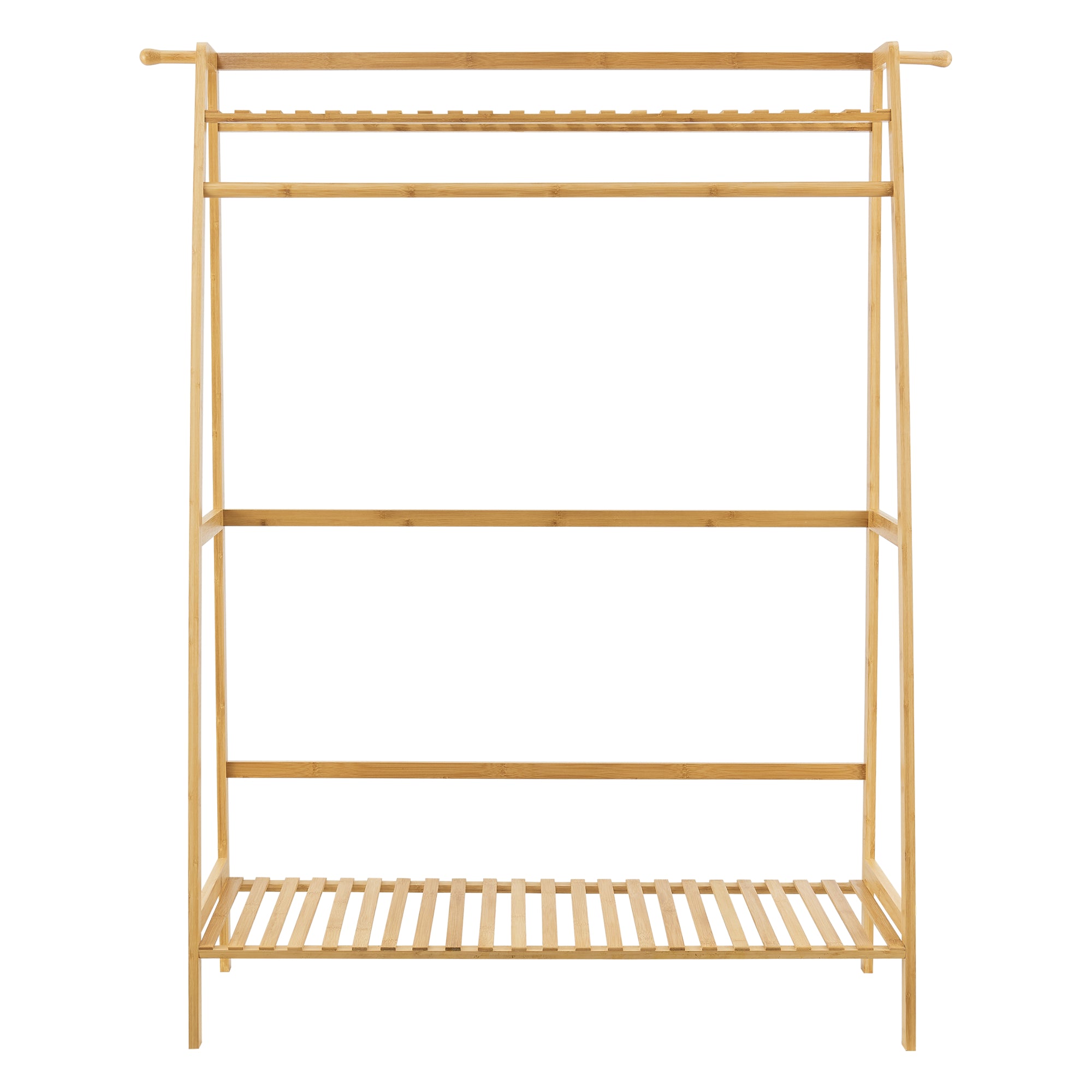 Ten praktyczny i wytrzymały wieszak na ubrania jest szybki i łatwy w montażu. Posiada drążek na ubrania i 2 półki na buty lub inne przedmioty. Haczyki na płaszcze po bokach umożliwiają powieszenie na przykład toreb lub ubrań.
