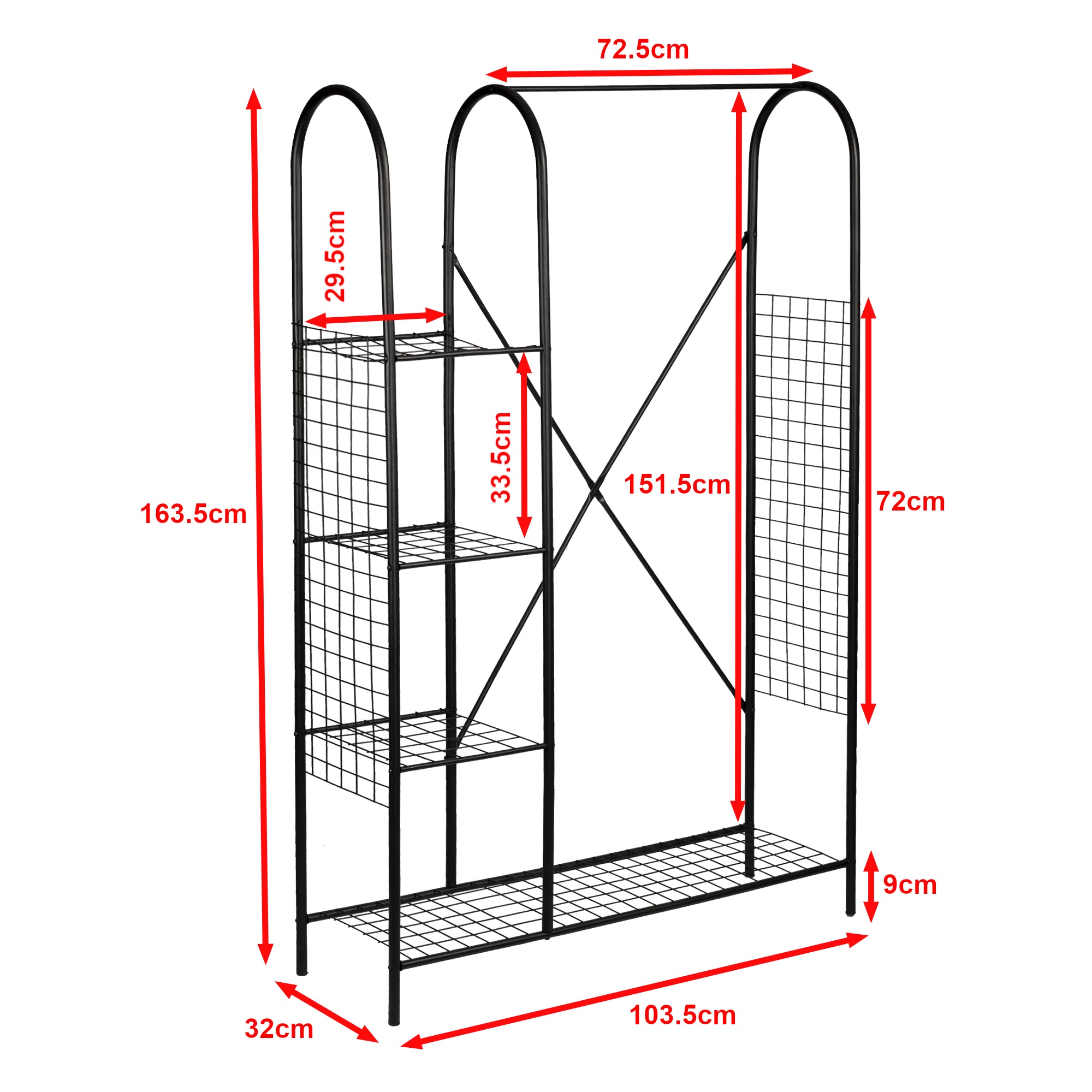 - Odległość od stojaka na buty do drążka na ubrania: 151,5 cm