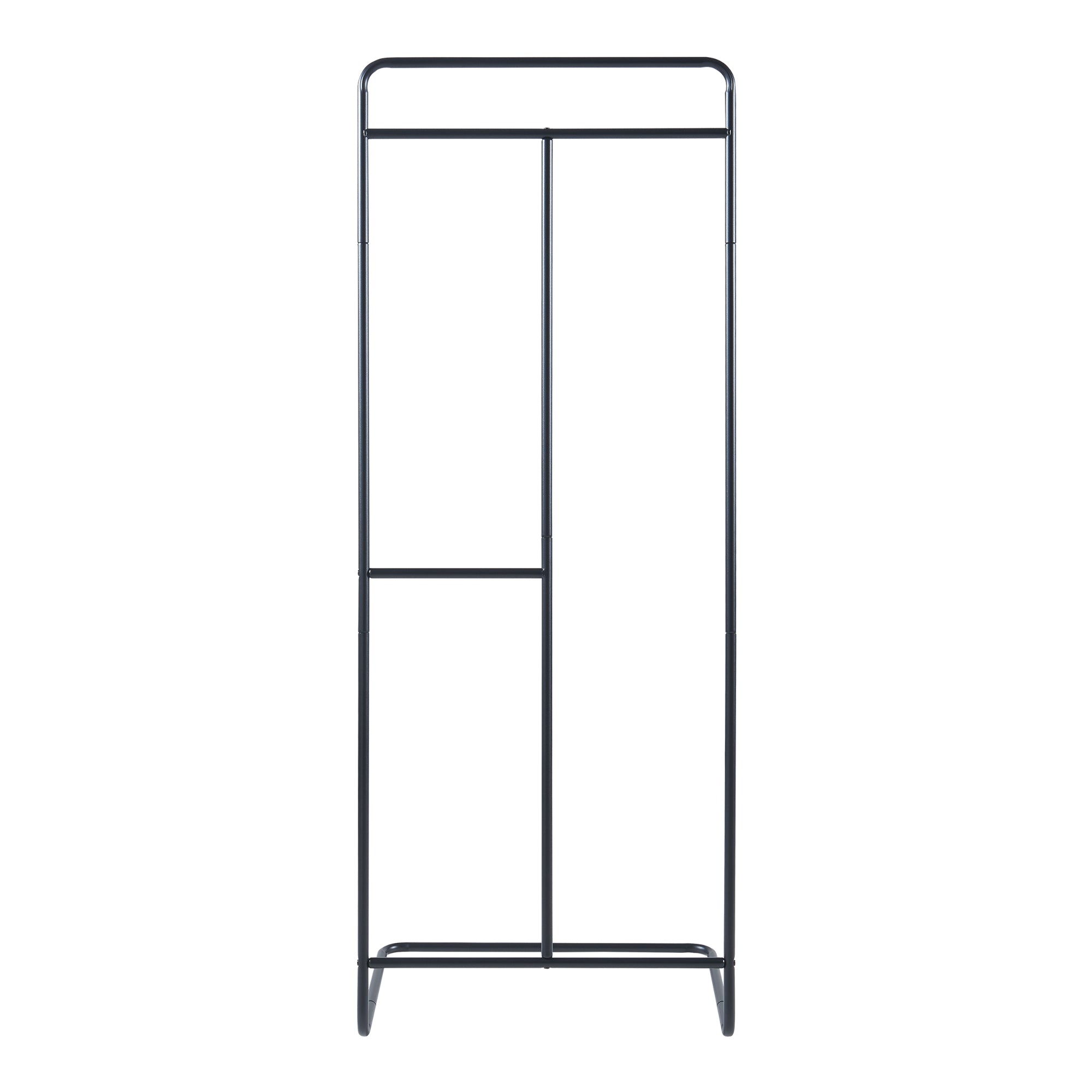 Gładka metalowa powierzchnia stojaka jest szczególnie łatwa do czyszczenia. Kurz i brud można łatwo usunąć wilgotną szmatką, co upraszcza konserwację i utrzymuje dobry wygląd organizera na ubrania przez długi czas.