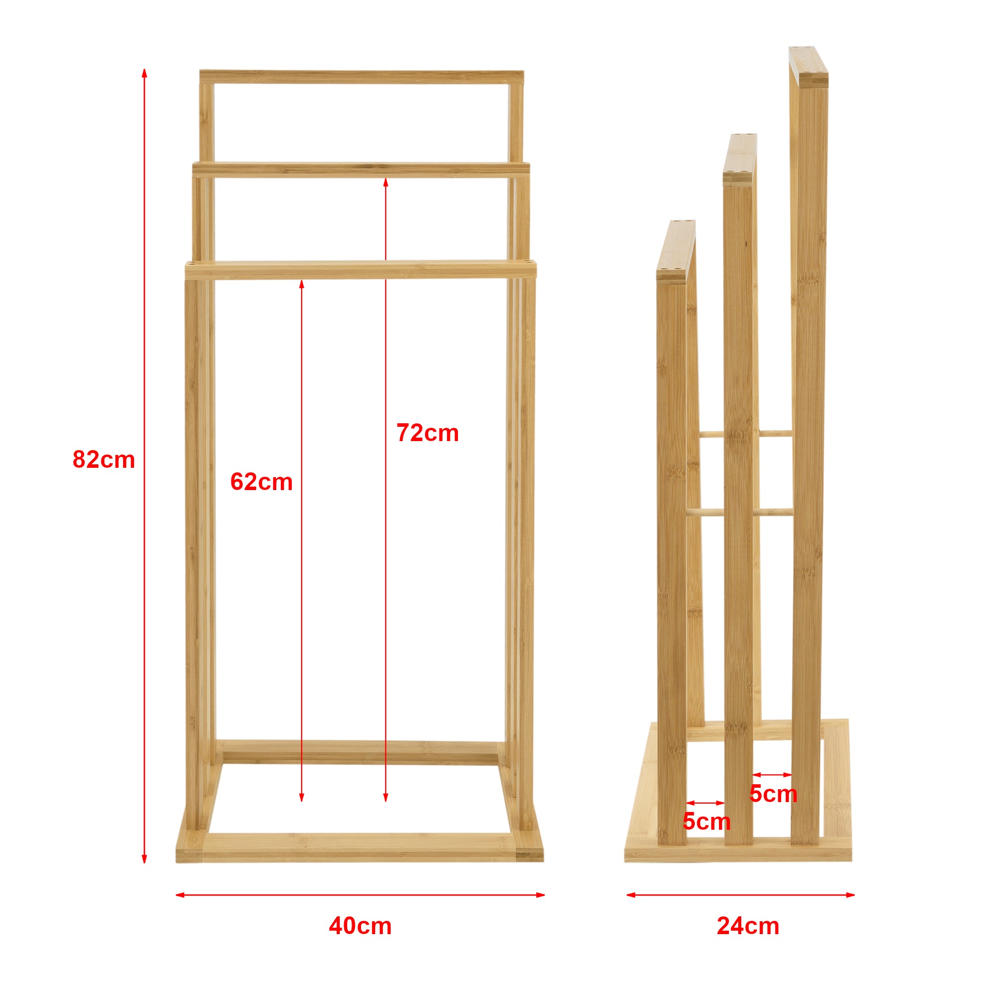 - Odległość między drążkami na ręczniki: 5 cm