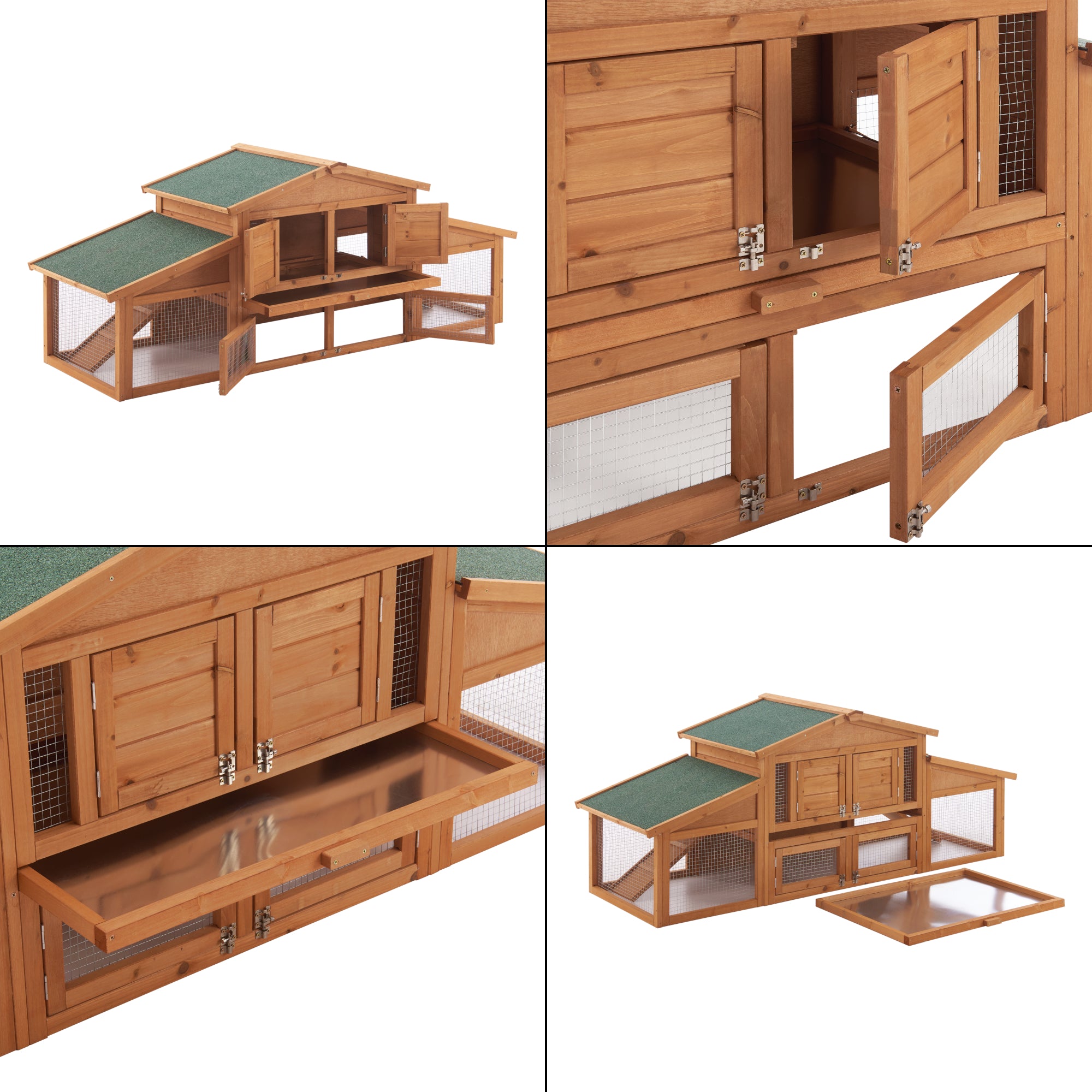 Dwupiętrowa klatka dla królików zapewnia Twoim gryzoniom komfortowe miejsce do życia. Dzięki dwóm wbudowanym rampom mogą swobodnie się poruszać i same decydować, czy chcą schować się wewnątrz klatki, czy przebywać na wybiegu, aby paść się. Dzięki siatce drucianej masz swoje ulubione zwierzęta zawsze na oku.