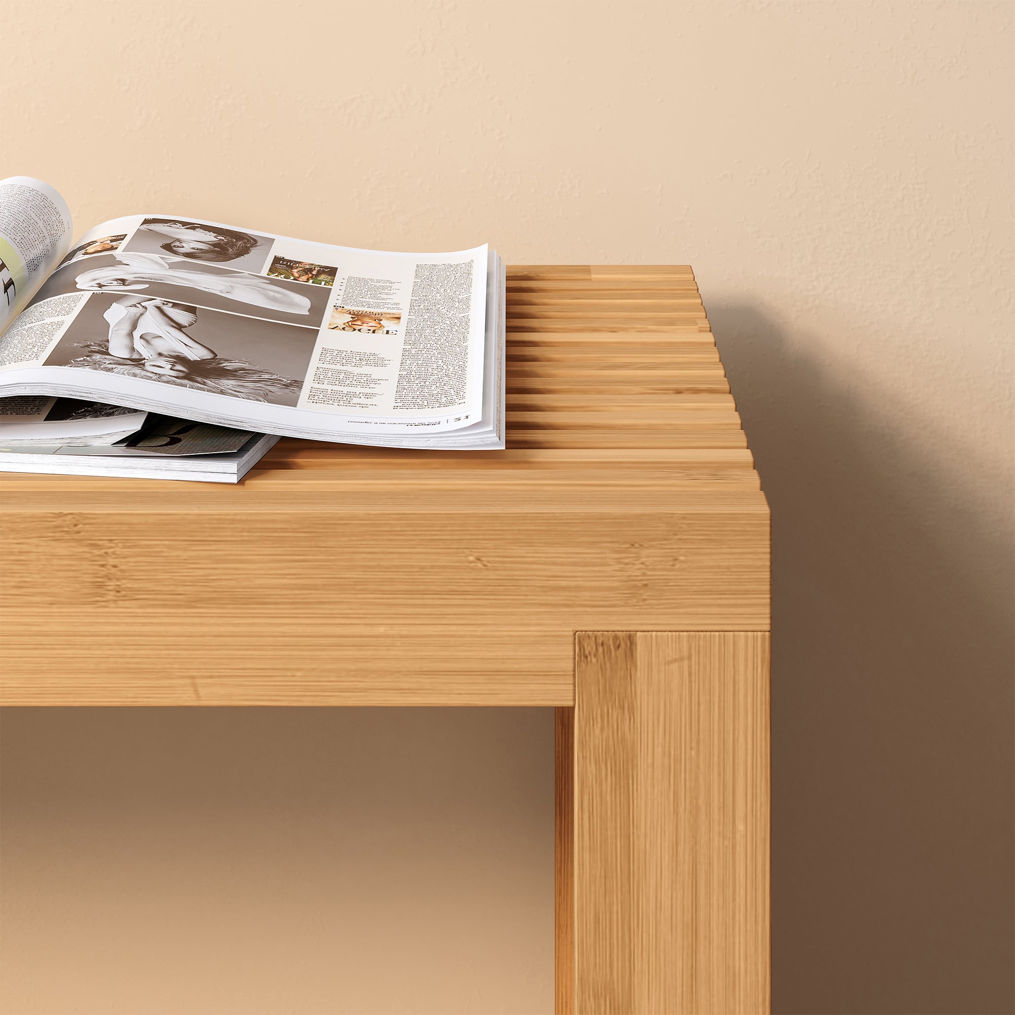 Poza przedpokojem i korytarzem, wszechstronnie użyteczna ławka może być również ustawiona w sypialni, na przykład na końcu łóżka, lub w salonie, gdy potrzebne jest dodatkowe miejsce do siedzenia. Dzięki odporności na wilgoć materiału bambusowego, polecana jest także do łazienki, gdzie może pomieścić ręczniki, świeżą bieliznę lub przybory do kąpieli oraz służyć jako miejsce do odkładania ubrań podczas prysznica.