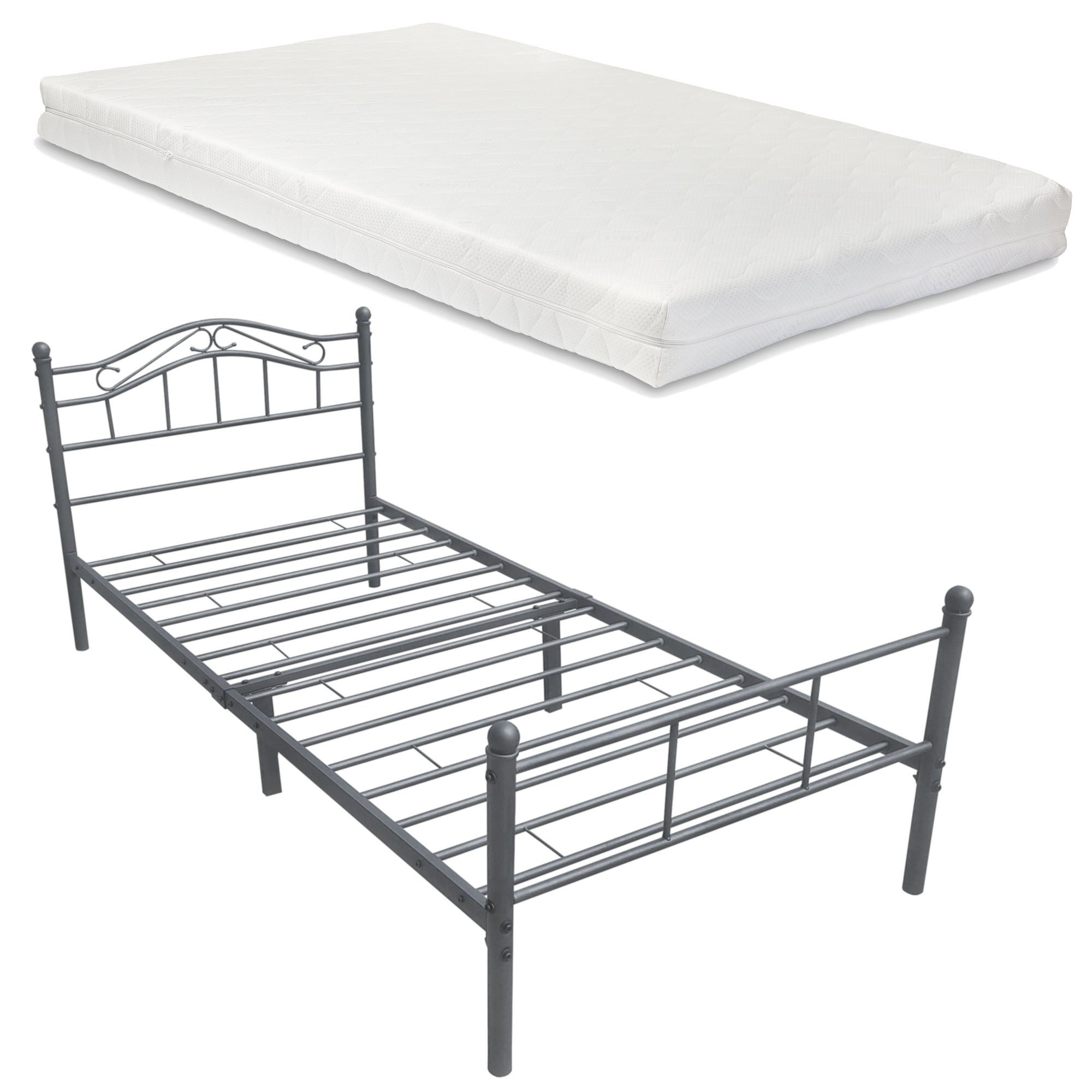 Praktyczne i stabilne łóżko metalowe ma solidną konstrukcję z metalu. Mocne listwy zapewniają niezbędne wsparcie i są bardzo wygodne. Materac z pianki zimnej oferuje przyjemny komfort snu. Jest odpowiedni dla alergików, oddychający i odporny na zużycie.