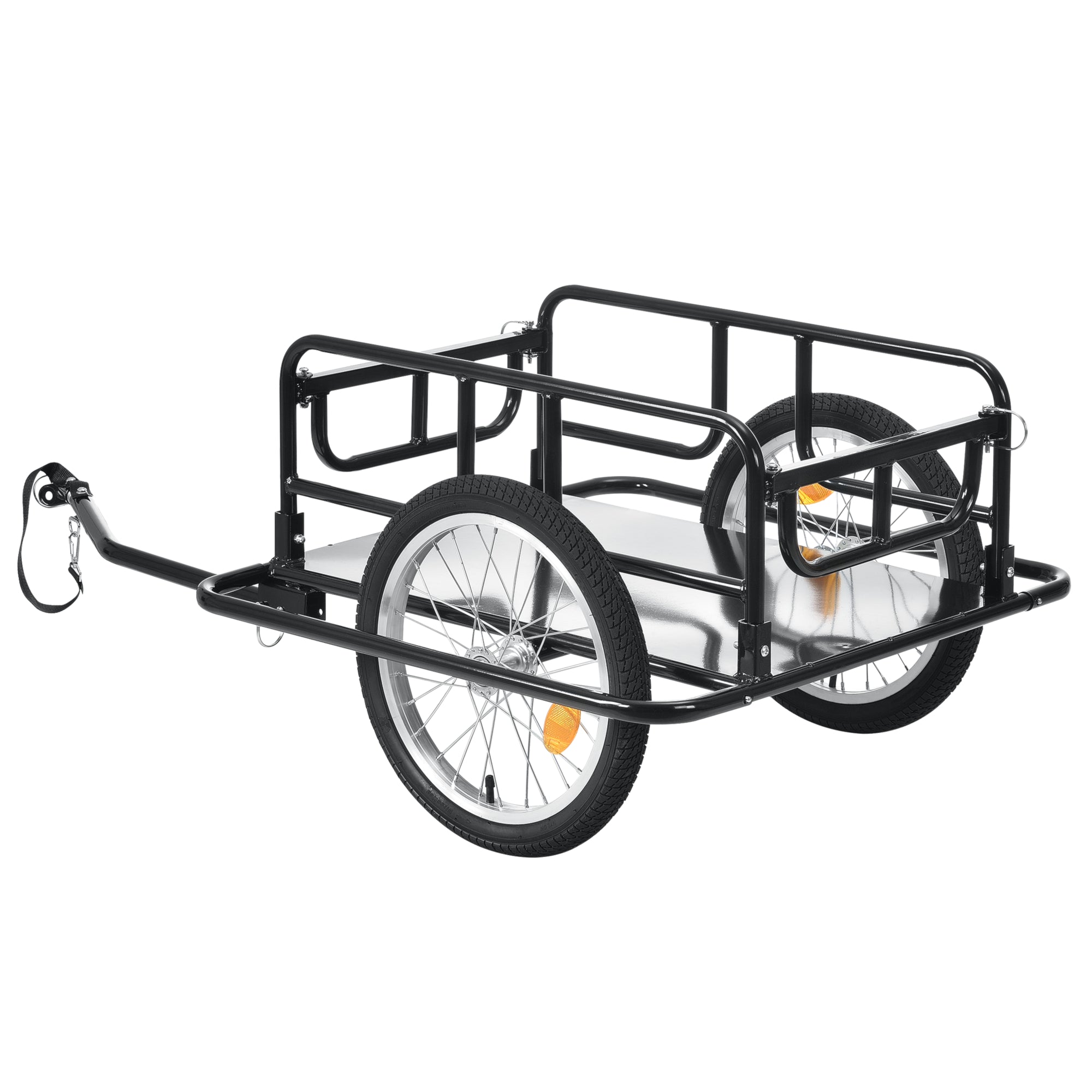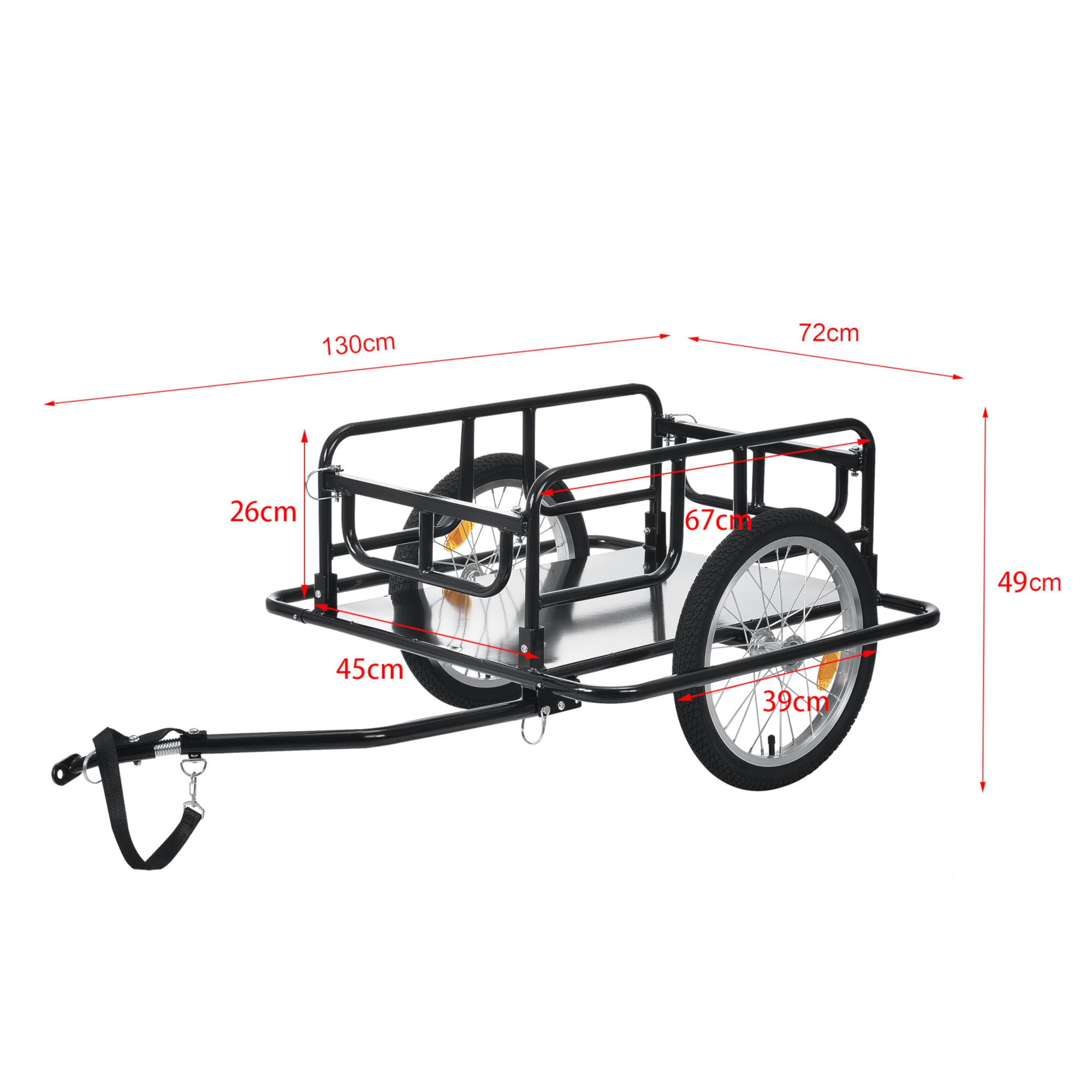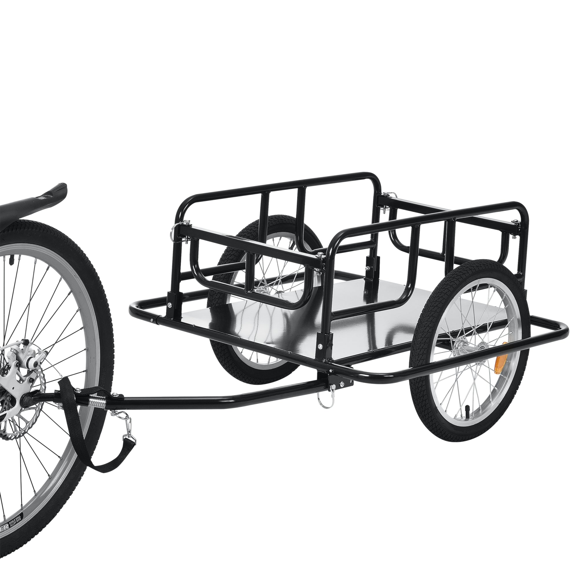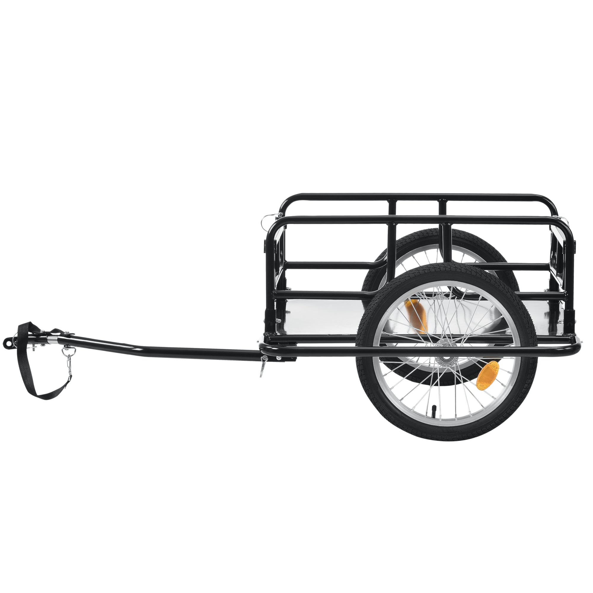 Praktyczna przyczepka rowerowa idealnie nadaje się do przewożenia przedmiotów. Posiada stałą płytę podłogową z blachy oraz boczną ochronę przed uderzeniami.