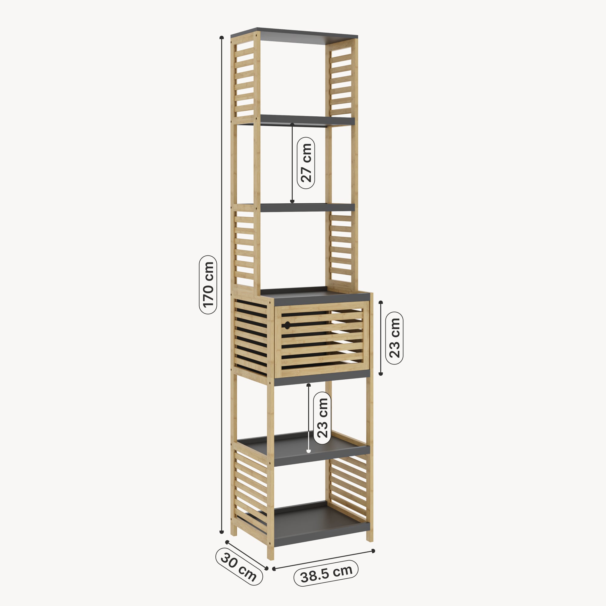 Ten regał łazienkowy natychmiast wprowadza więcej porządku w łazience i oferuje kompaktową przestrzeń do przechowywania na niewielkiej powierzchni. Można go oszczędnie ustawić w niszach, obok umywalki lub w rogu.