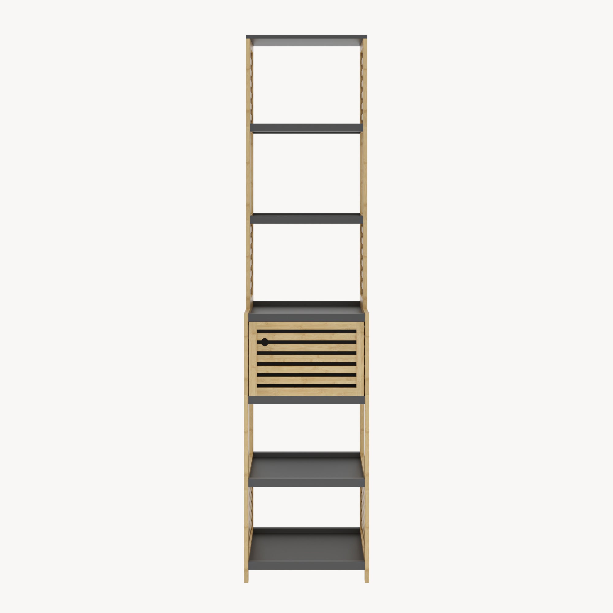 Regał nadaje się nie tylko jako regał łazienkowy, ale także jako praktyczne rozwiązanie do przechowywania w toalecie dla gości lub w pomieszczeniu gospodarczym. Dzięki temu uporządkujesz akcesoria, kosze i zapasy, tworząc schludny wygląd całości.