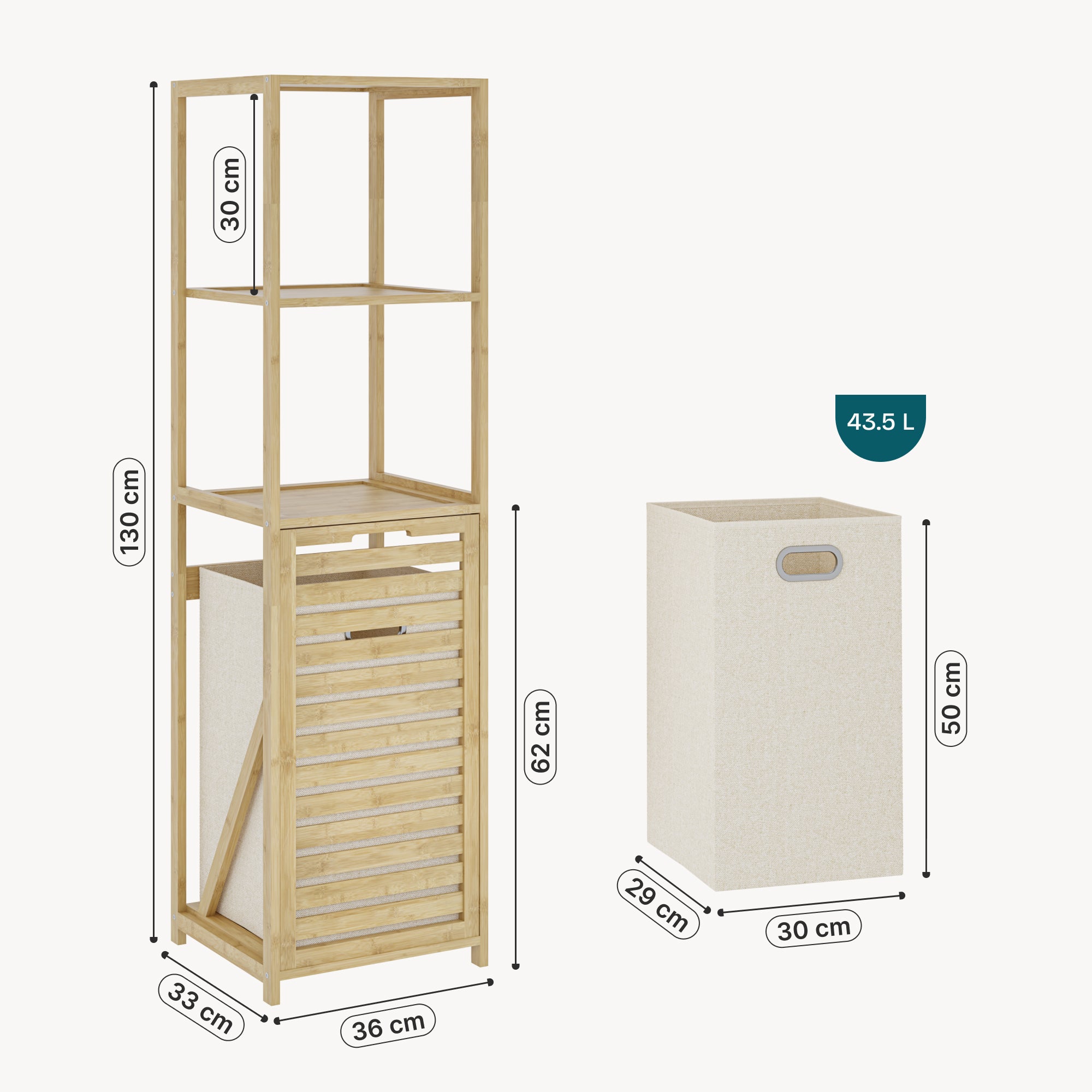 - Kosz na pranie (WxSxG): 50 x 30 x 29 cm