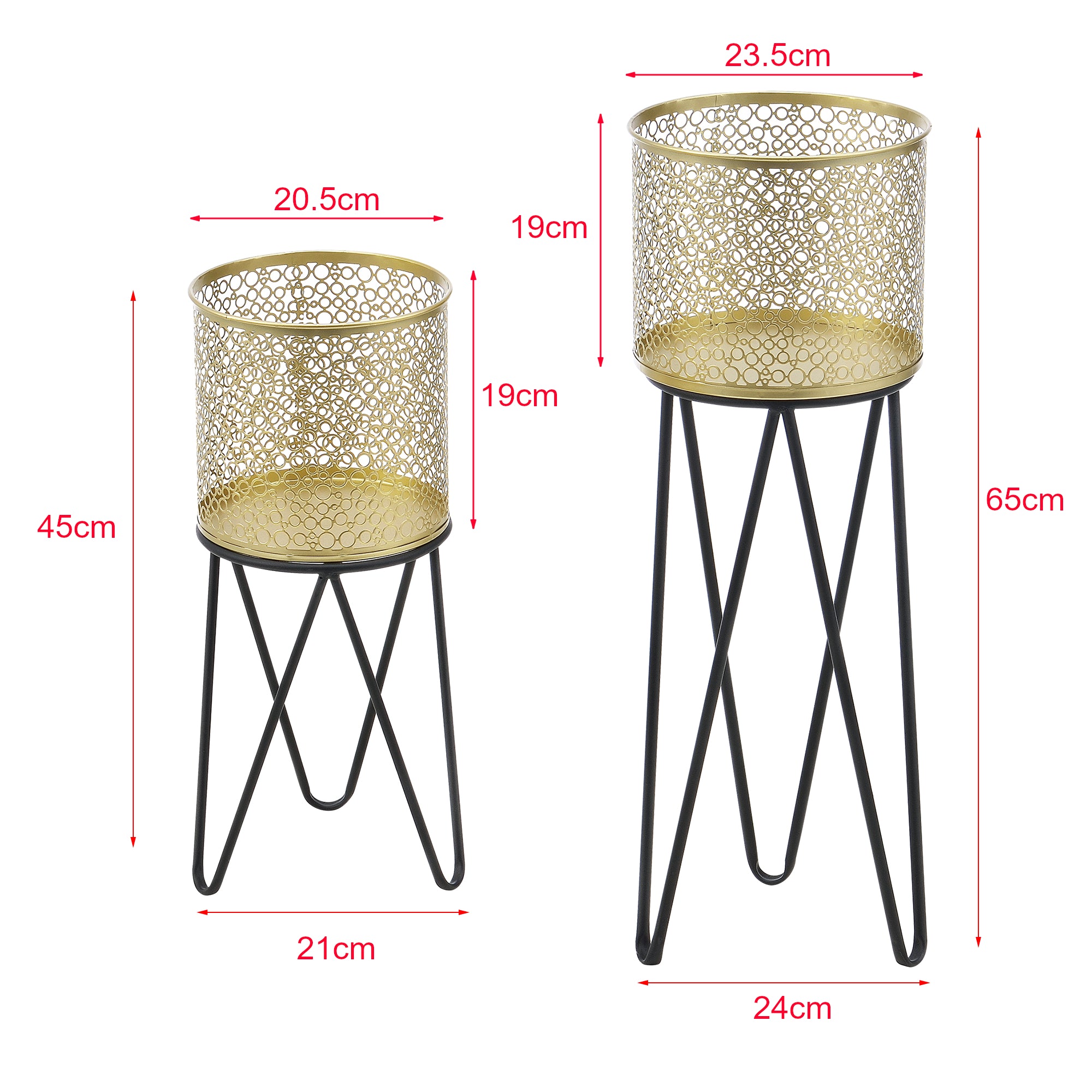 - 2 stojaki na doniczki o różnych rozmiarach w zestawie