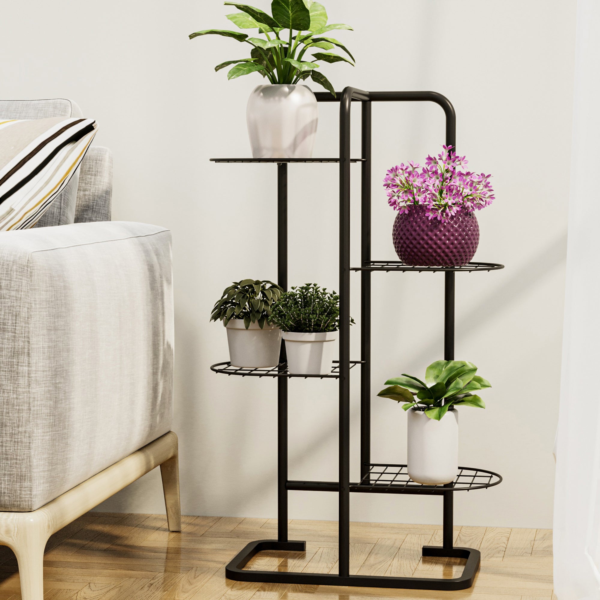 Stojak na kwiaty jest szybki i łatwy w montażu. Cztery składane półki pozwalają wyeksponować rośliny w uporządkowany i oszczędzający miejsce sposób.