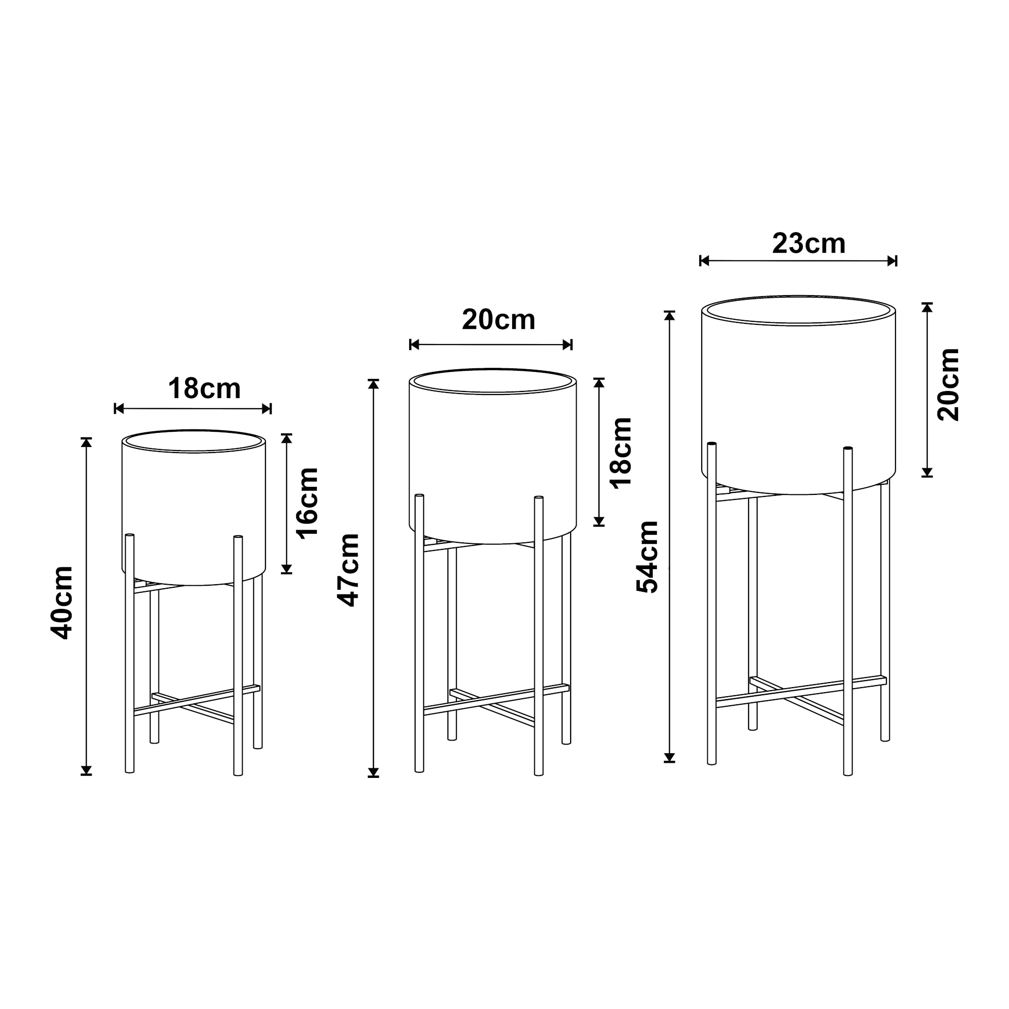 Zestaw składa się z trzech stojaków na rośliny o różnych rozmiarach. Są one idealnym rozwiązaniem, aby efektownie wyeksponować Twoje ulubione rośliny.