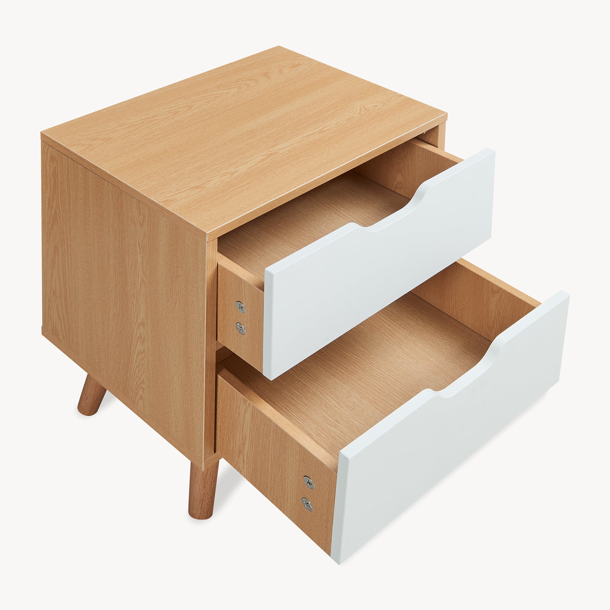 - Stolik nocny z szufladami i praktycznymi uchwytami