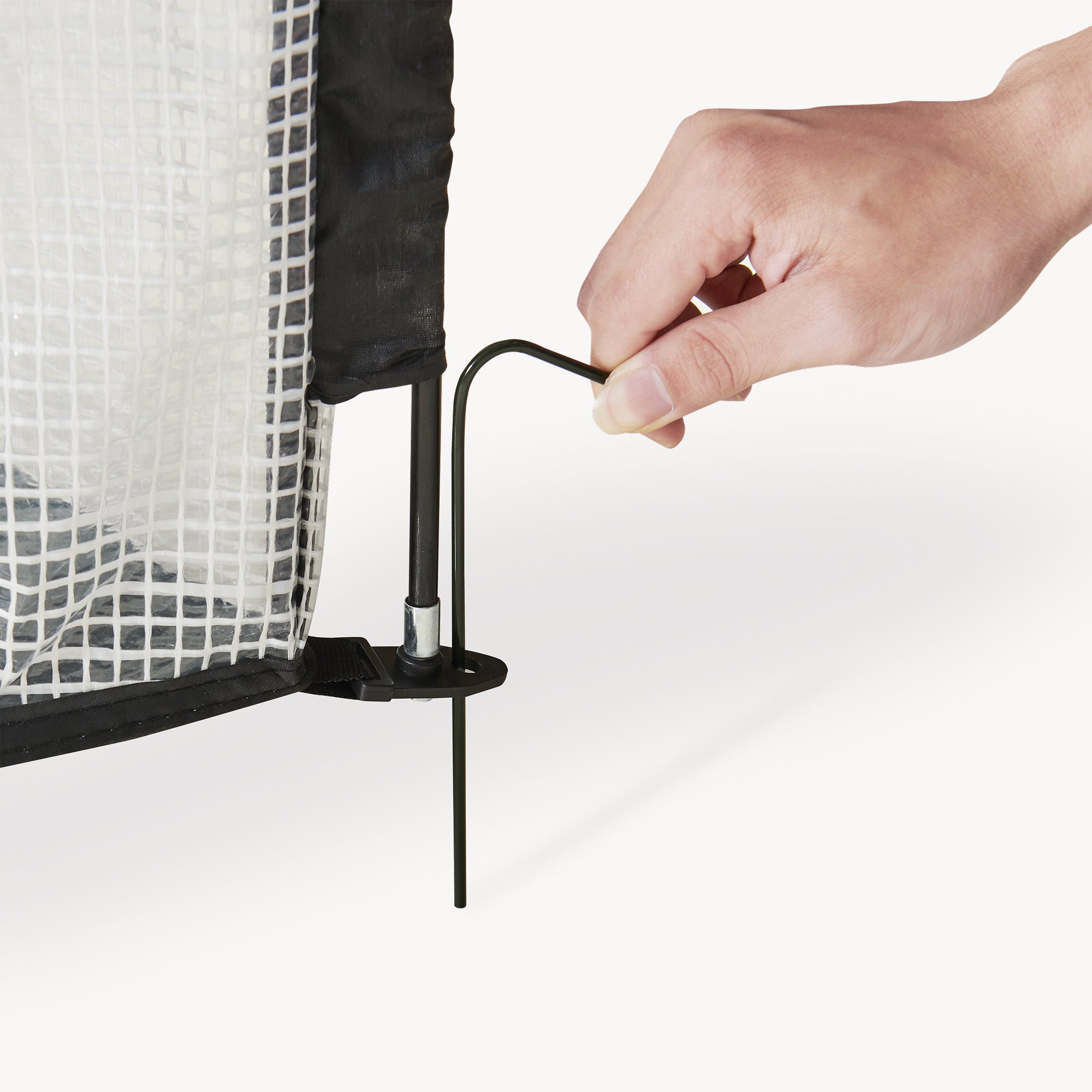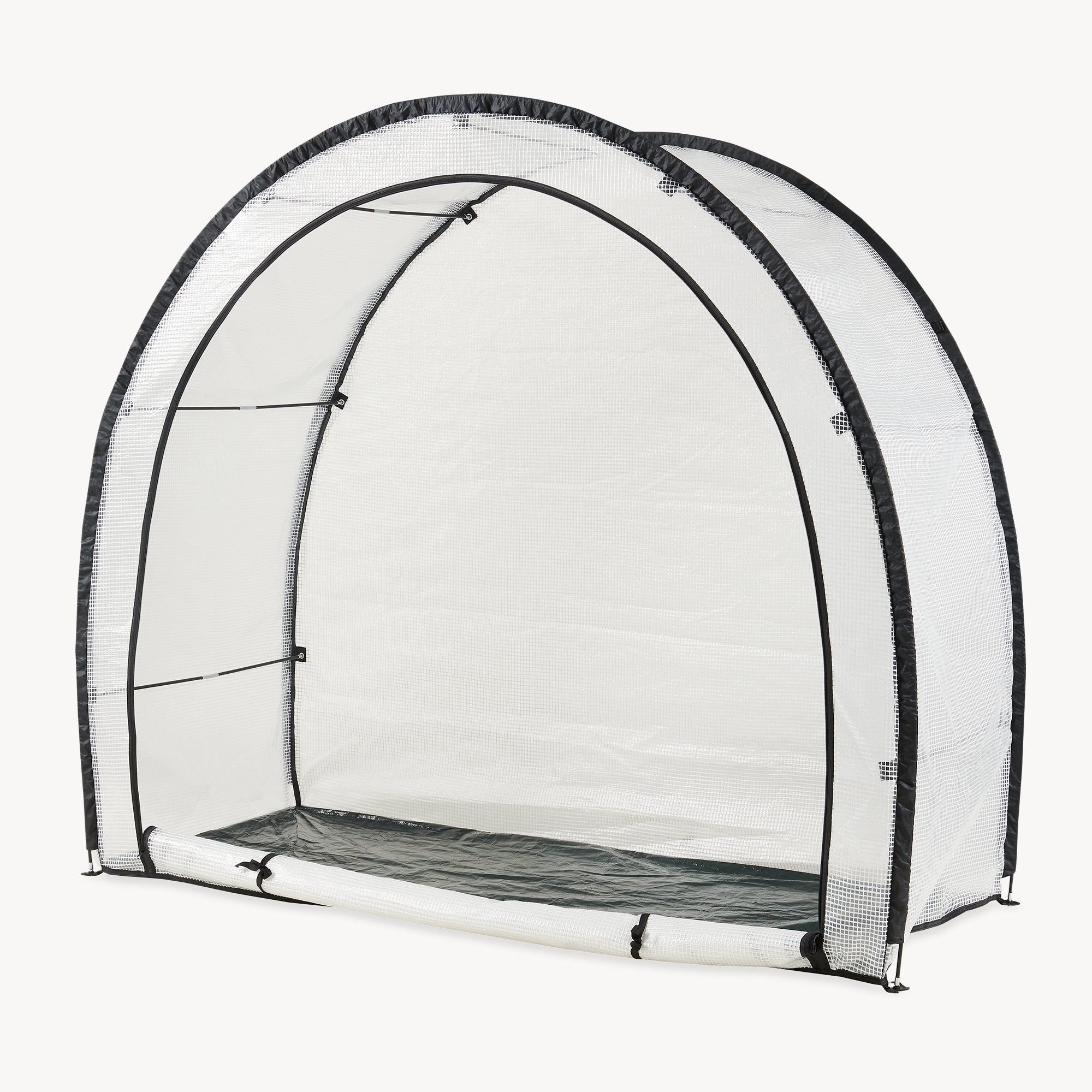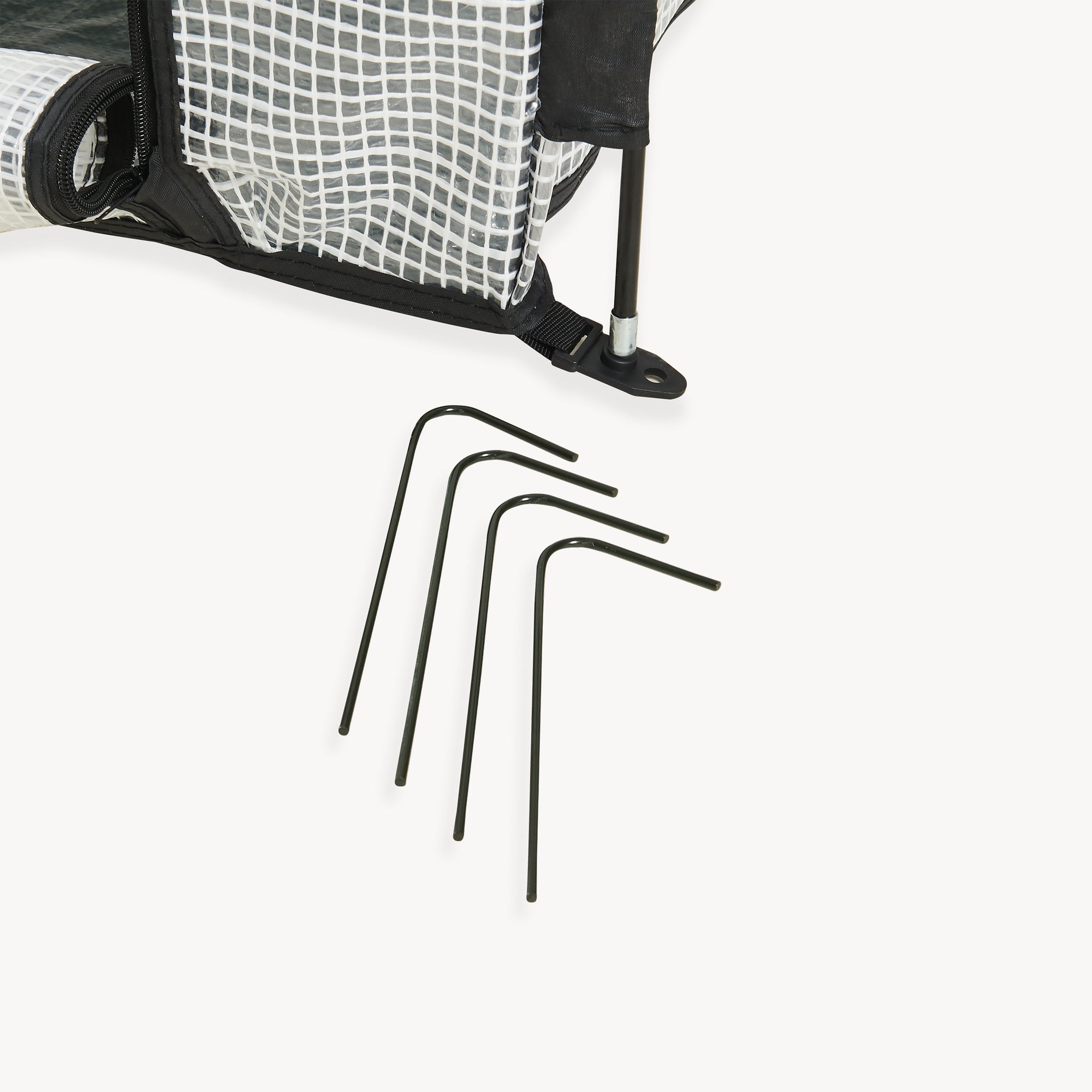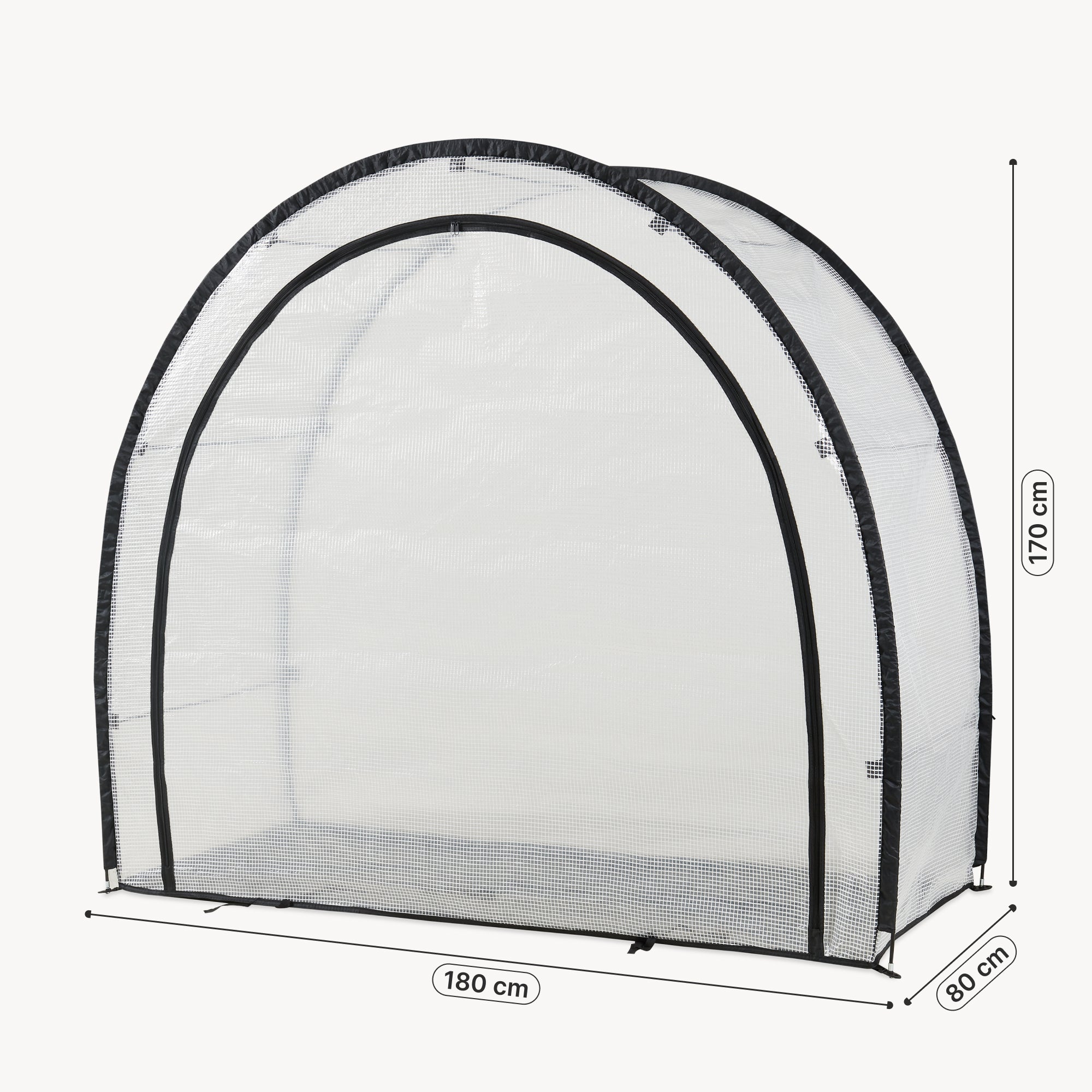 Stelaż zapewnia stabilny kształt podstawowy, a cztery dołączone śledzie gwarantują pewne mocowanie do podłoża. Dzięki temu mobilny namiot na rośliny doskonale nadaje się do elastycznego użytkowania na trawnikach, w ogrodzie użytkowym lub w osłoniętych przestrzeniach na zewnątrz wokół domu.