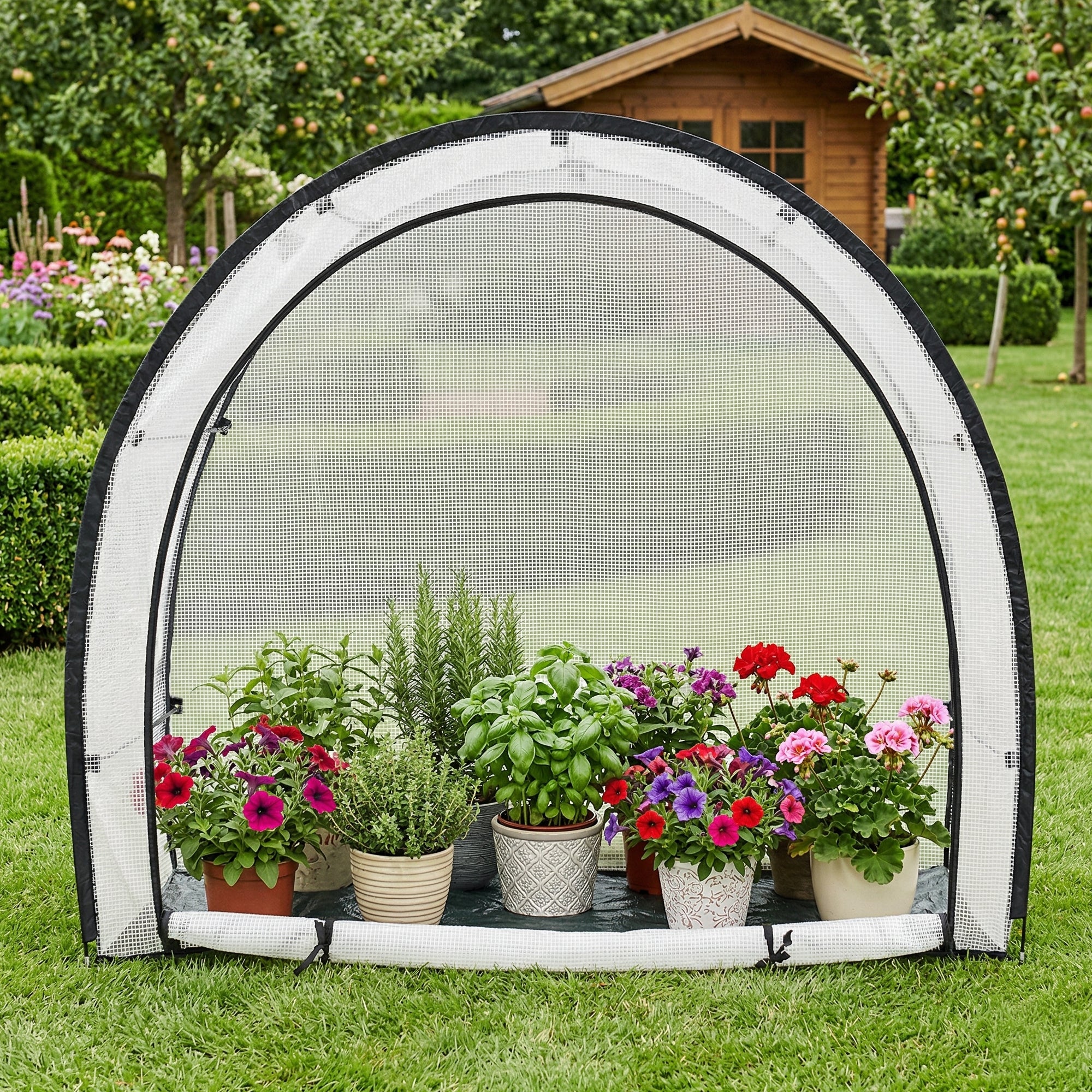 Dzięki wysokiemu, tunelowemu kształtowi namiot ochronny oferuje dużo miejsca na kilka donic, pojemników na rośliny lub mniejsze rzędy roślin. Idealnie nadaje się do pomidorów, bazylii, sadzonek oraz innych wrażliwych roślin ogrodowych, które na co dzień powinny być chronione.