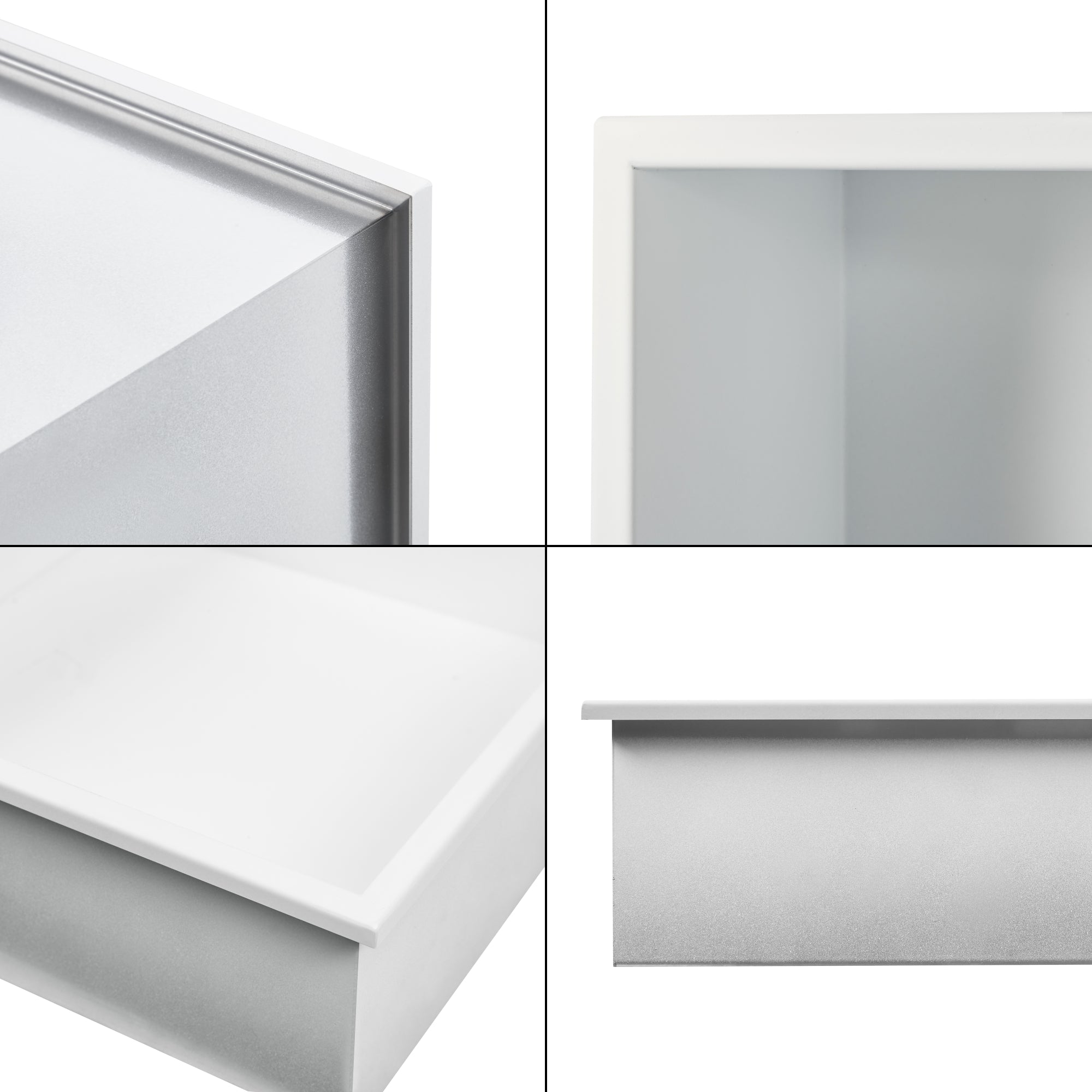 Wykonana z wysokiej jakości, nierdzewnej stali szlachetnej, wnęka ścienna zachwyca odpornością na wodę i łatwością pielęgnacji. Solidna konstrukcja gwarantuje długotrwałe użytkowanie i ponadczasowy wygląd, bez konieczności skomplikowanej konserwacji.