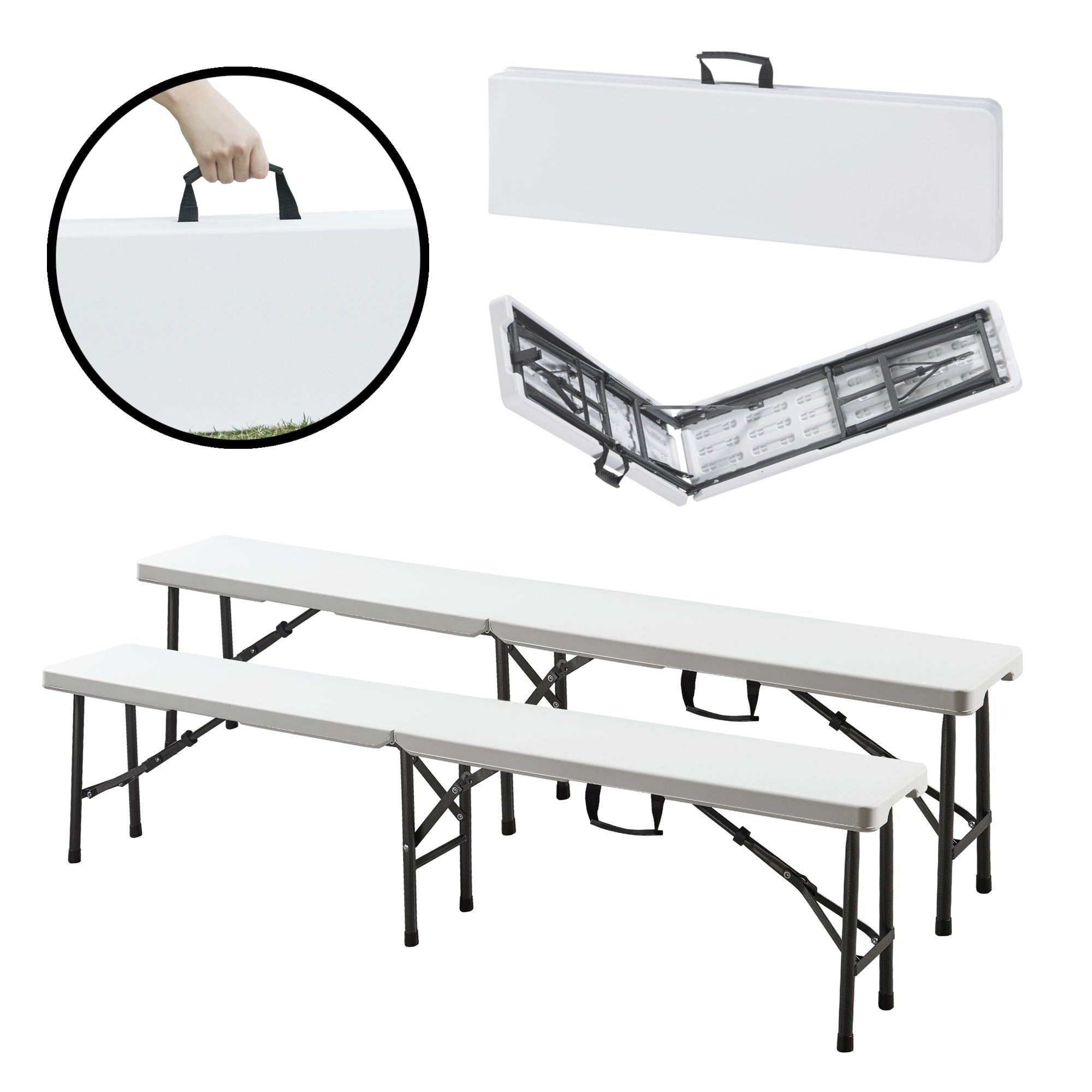 Dzięki funkcji składania ławki można szybko i łatwo rozłożyć. Dzięki wbudowanym uchwytom do przenoszenia można je bez trudu przemieszczać z miejsca na miejsce.